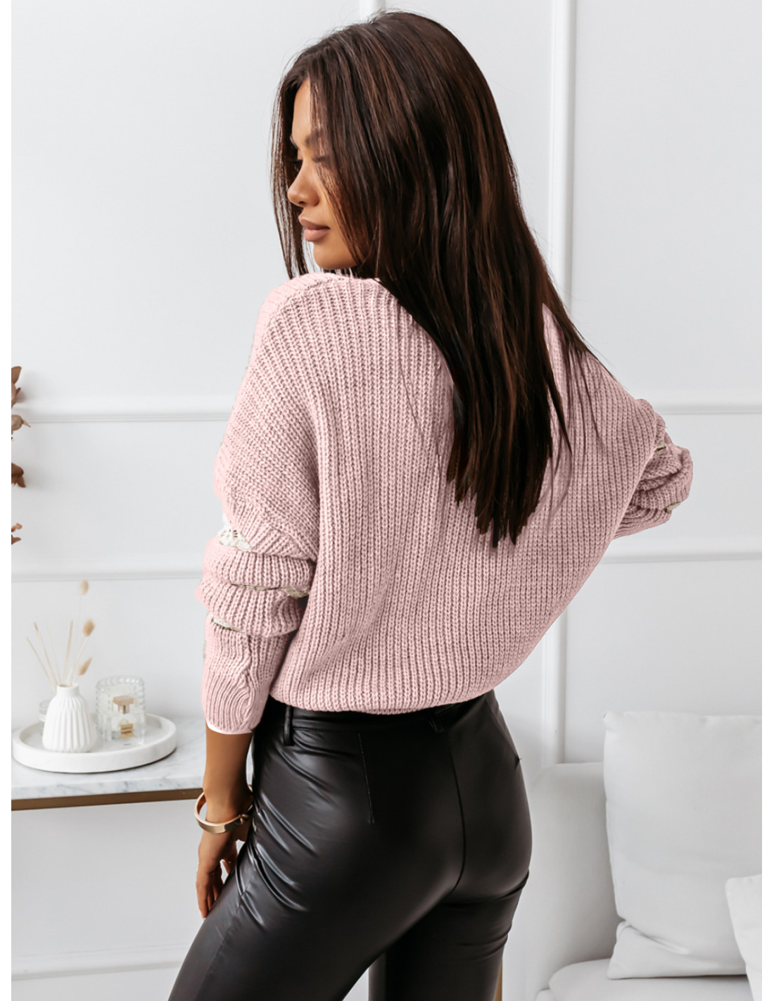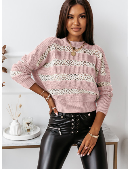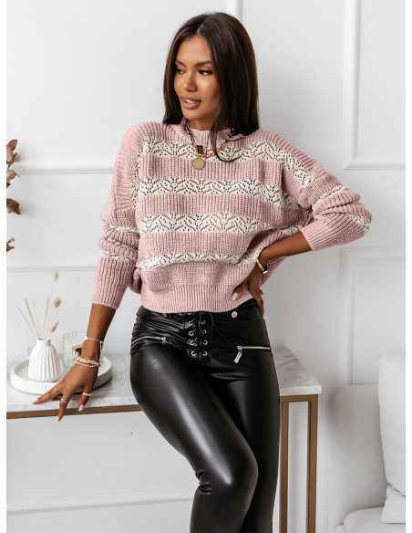 Sweter z ażurowymi paskami DIMA - pudrowy róż