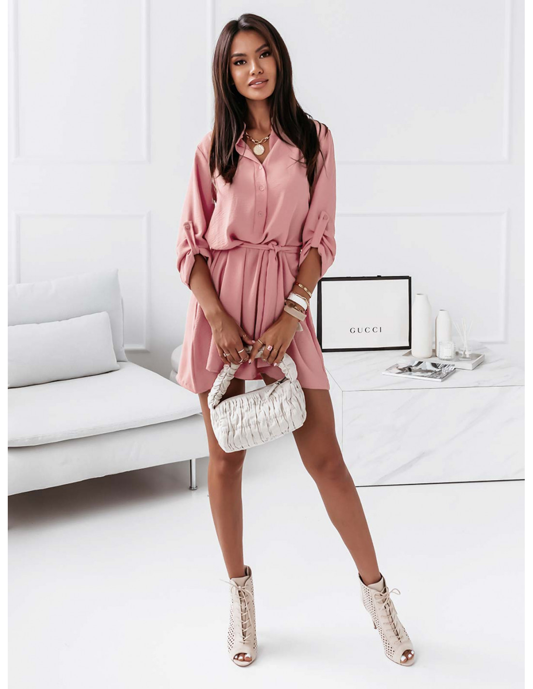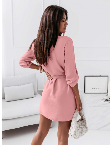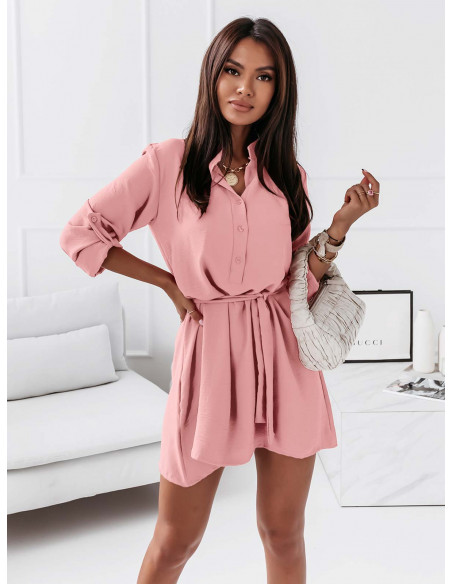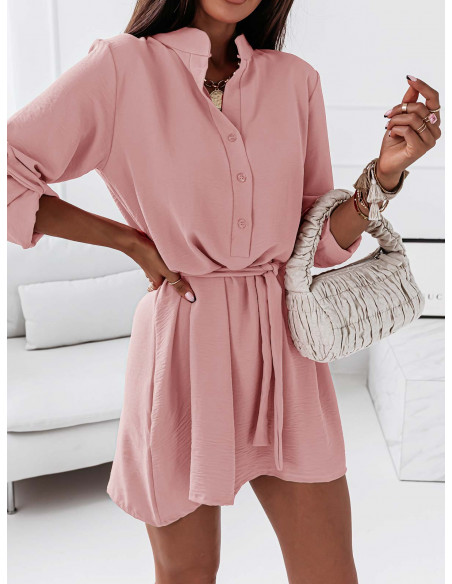 Sukienka koszulowa ze stójką - JENNY - pudrowy róż