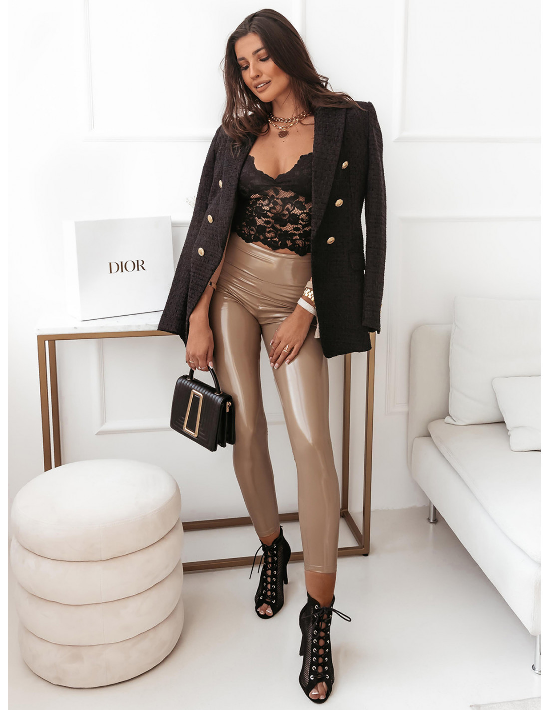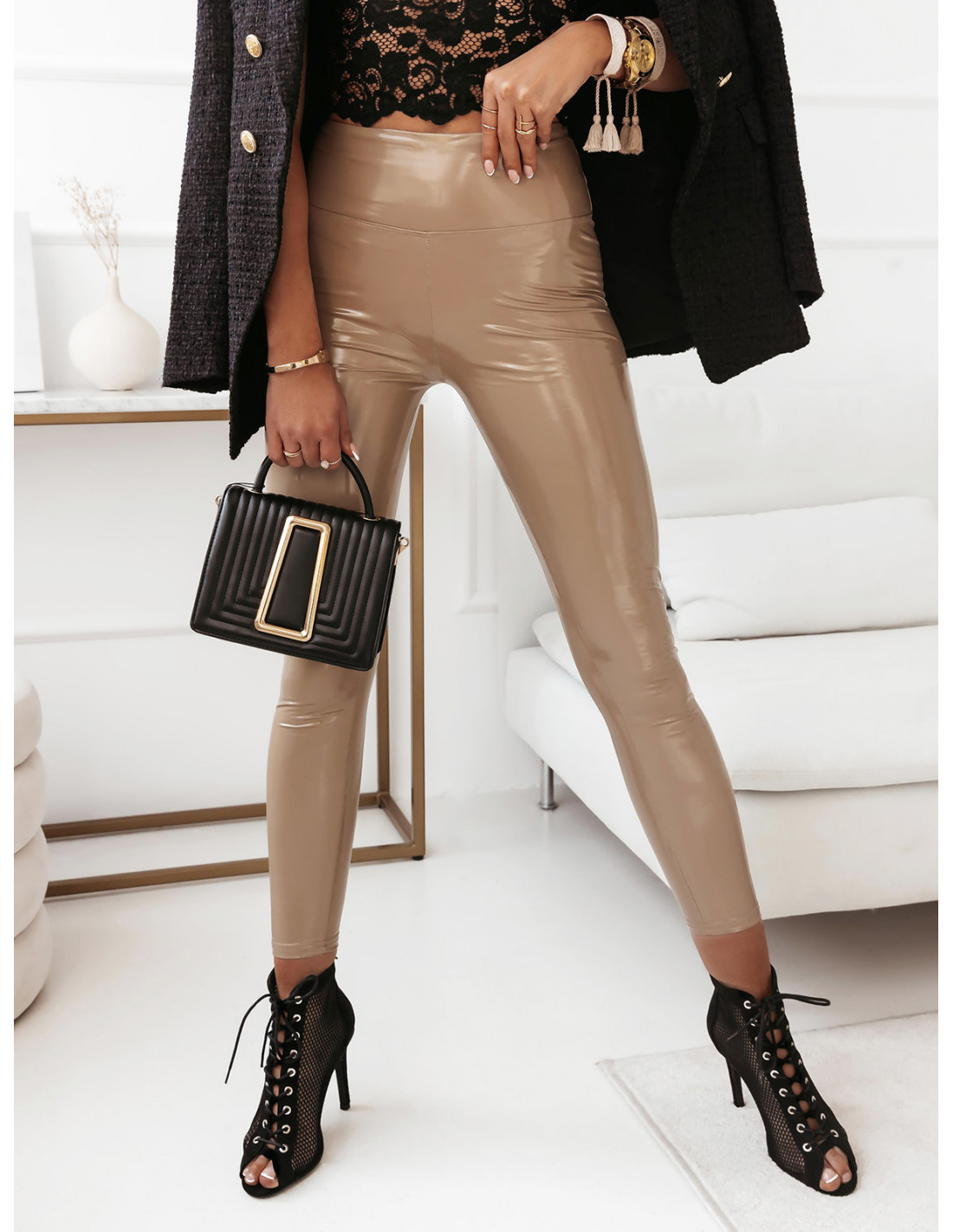 Lateksowe lakierowane spodnie legginsy - LOUIS - beżowe
