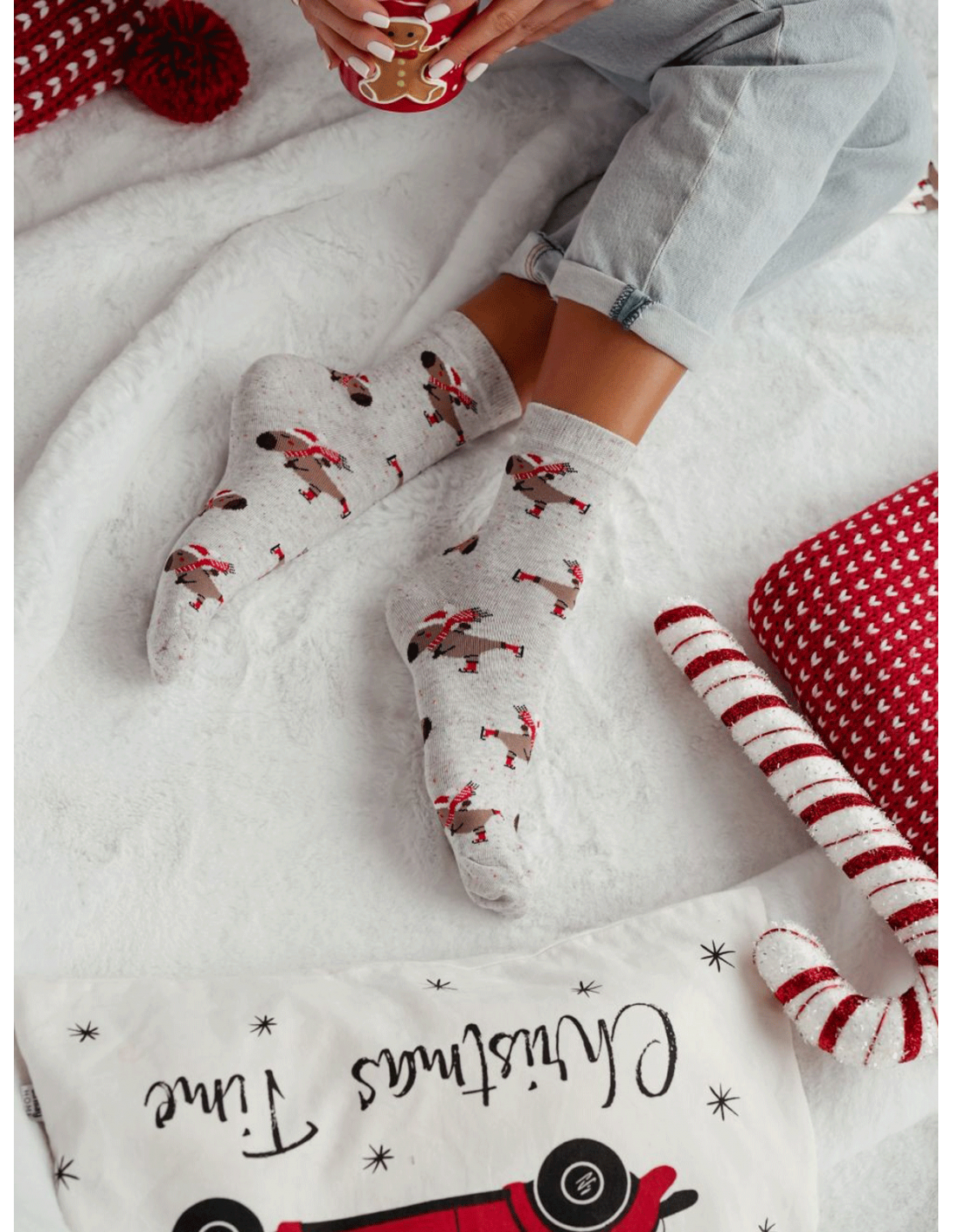 Skarpetki damskie świąteczne DUŻY RENIFER i KROPKI - wzór 9
