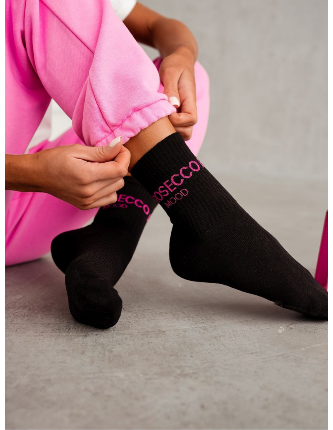Nadruk "PROSECCO MOOD" w intensywnym różowym kolorze nadaje im lekkiego, imprezowego charakteru.
