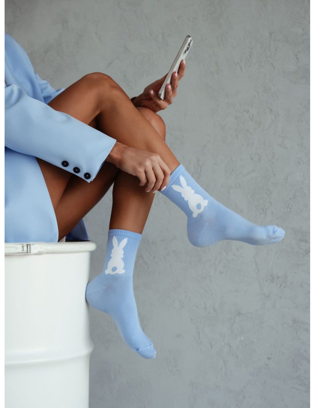 Skarpetki damskie KRÓLICZEK Z OGONKIEM - niebieskie