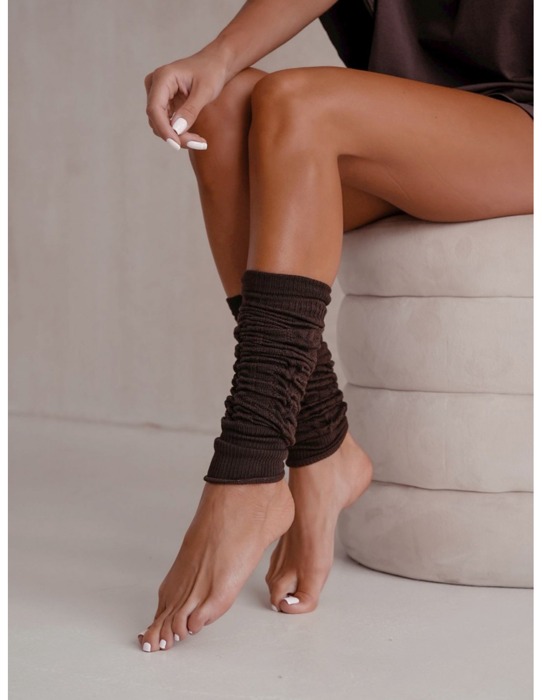 Getry ocieplacze bawełniane ażurowe DITA- czekoladowe