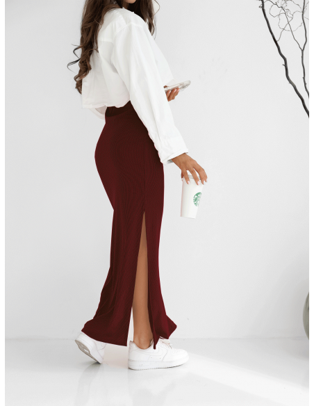 Wysoki stan i dopasowany fason pięknie podkreślają sylwetkę, a rozporki po bokach dodają odważnego charakteru i zapewniają swobodę ruchów.