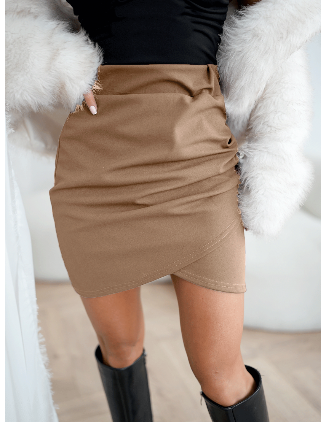 Spódnica mini przekładana z marszczeniem DORSA - beżowa