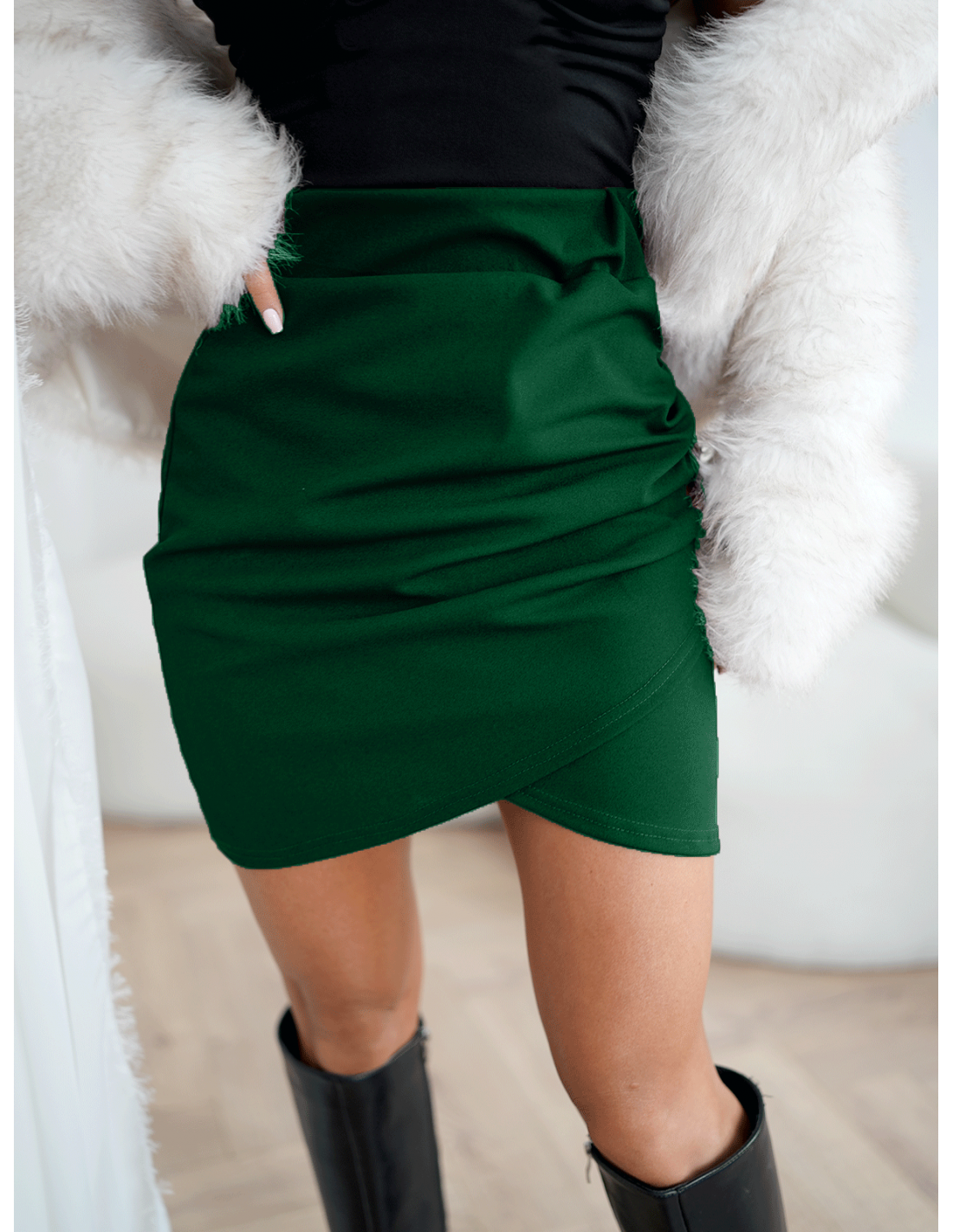 Spódnica mini przekładana z marszczeniem DORSA - butelkowa zieleń