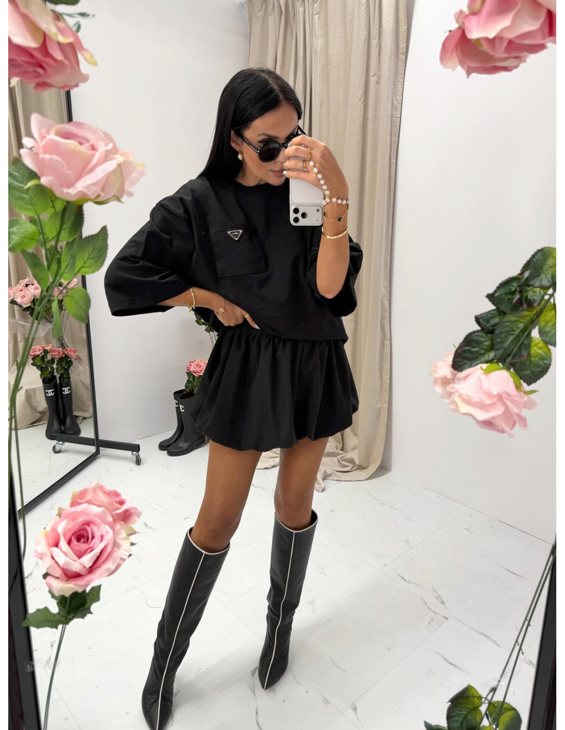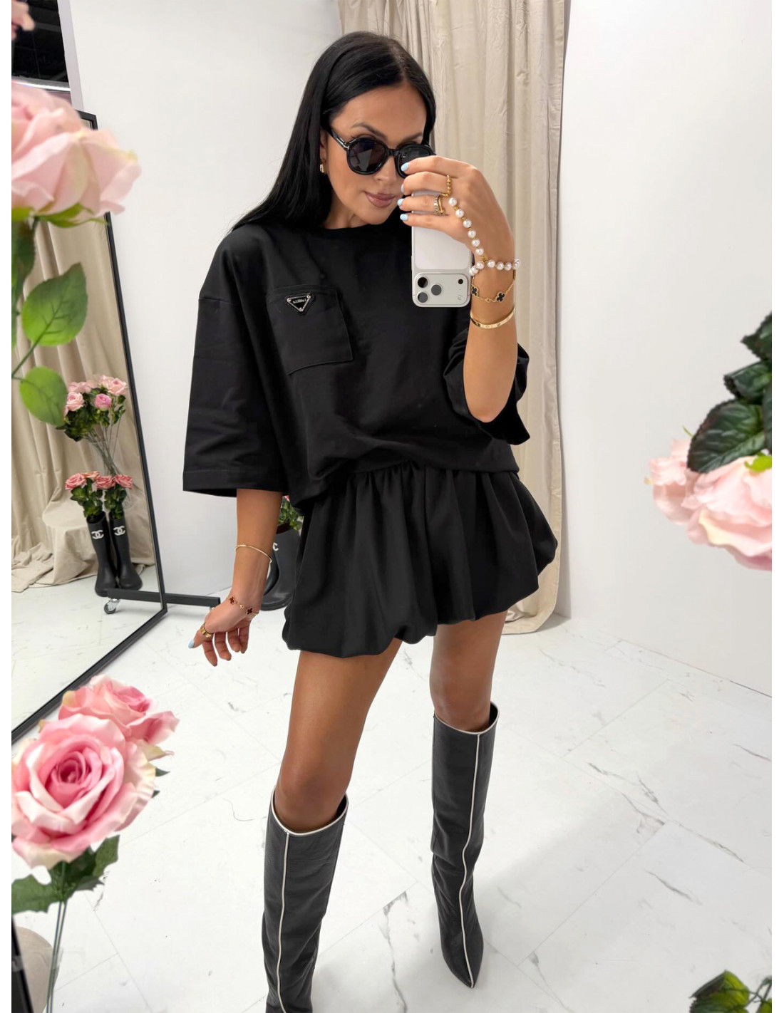 Czarne spódnico-spodenki o kroju spódniczki mini bombki to absolutny hit dla kobiet, które kochają modę z charakterem i wygodę w jednym.