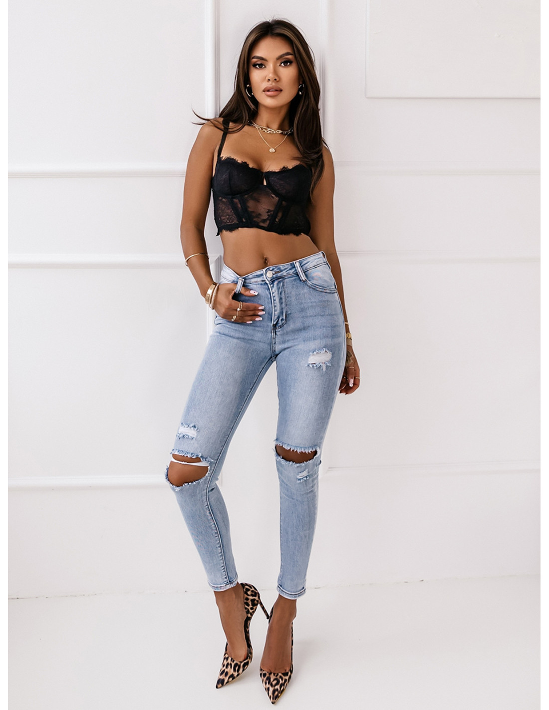 Klasyczne jeansy rurki z dziurami PARIS - jeans