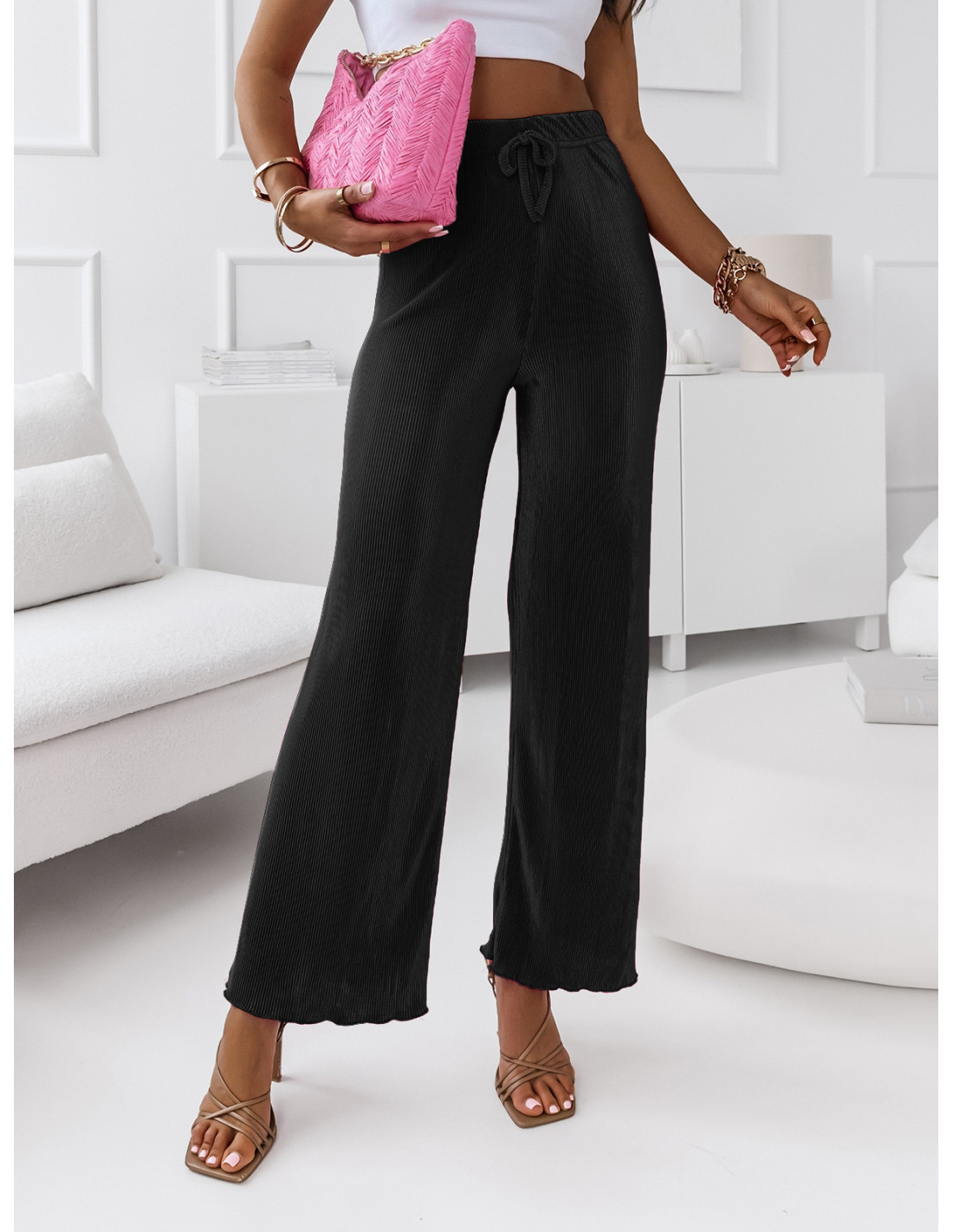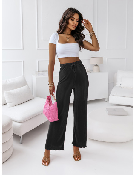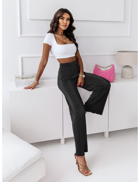 Plisowane spodnie z szerokimi nogawkami - VIOLETTA - czarne