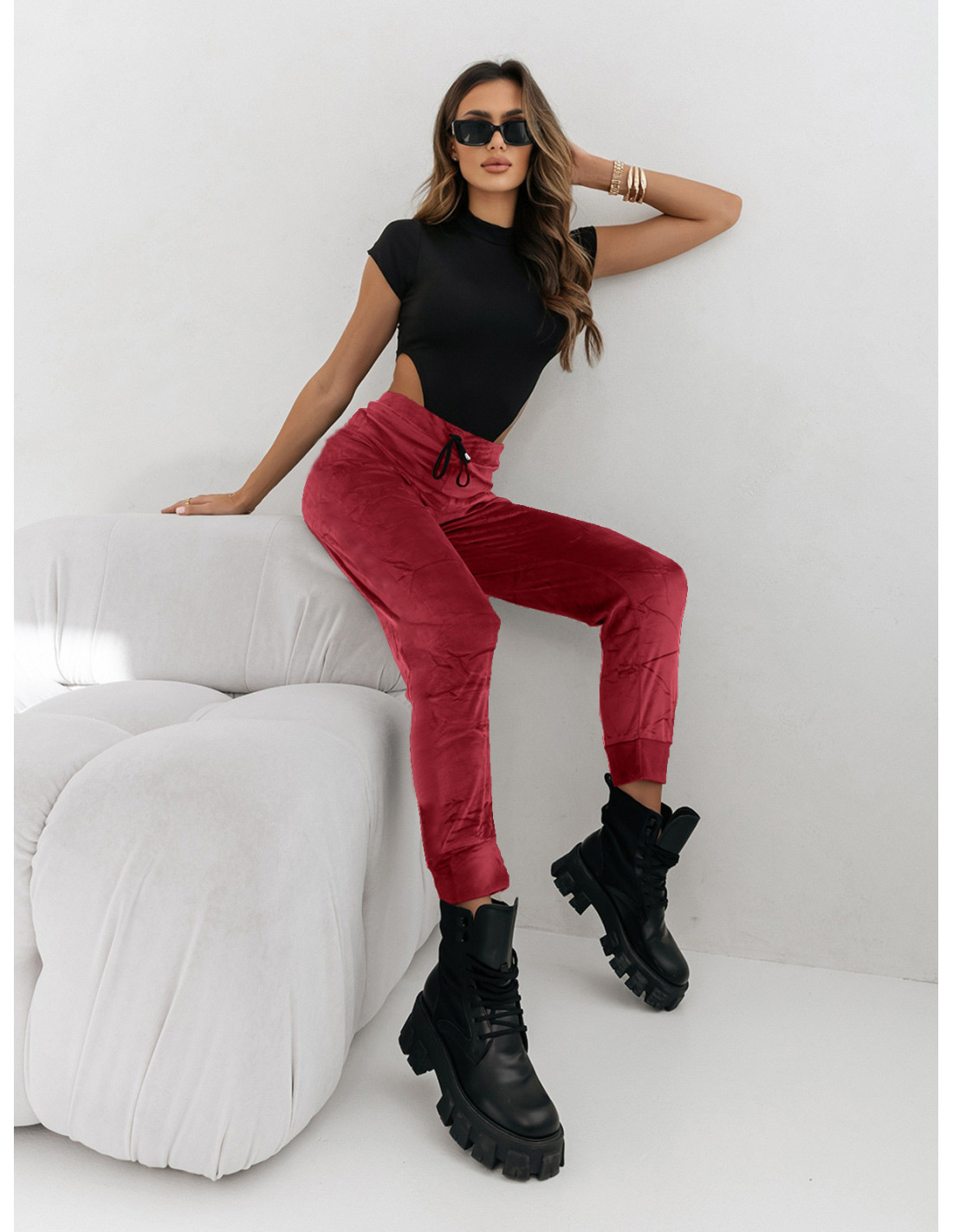 Materiał, z którego są wykonane spodnie jest bardzo rozciągliwy.