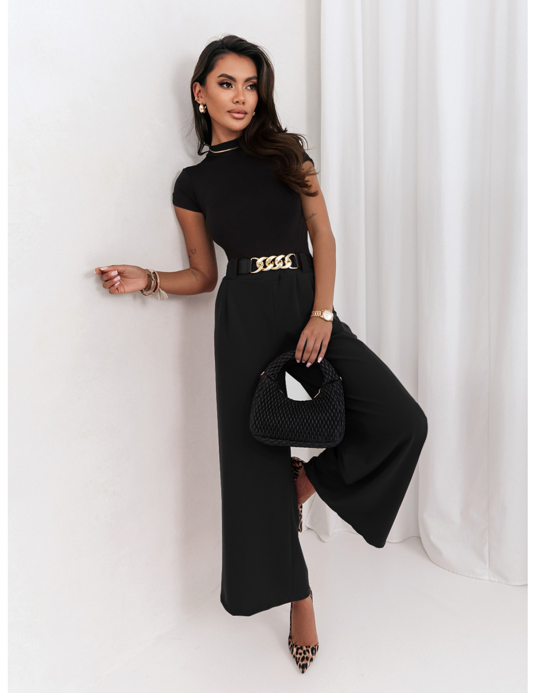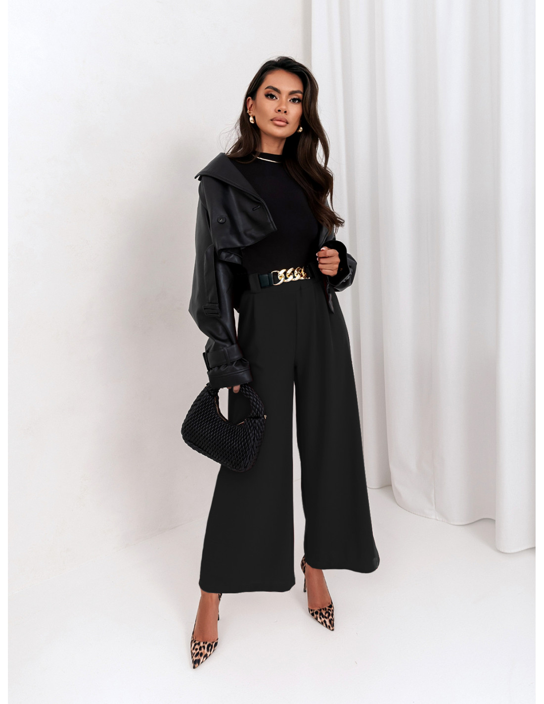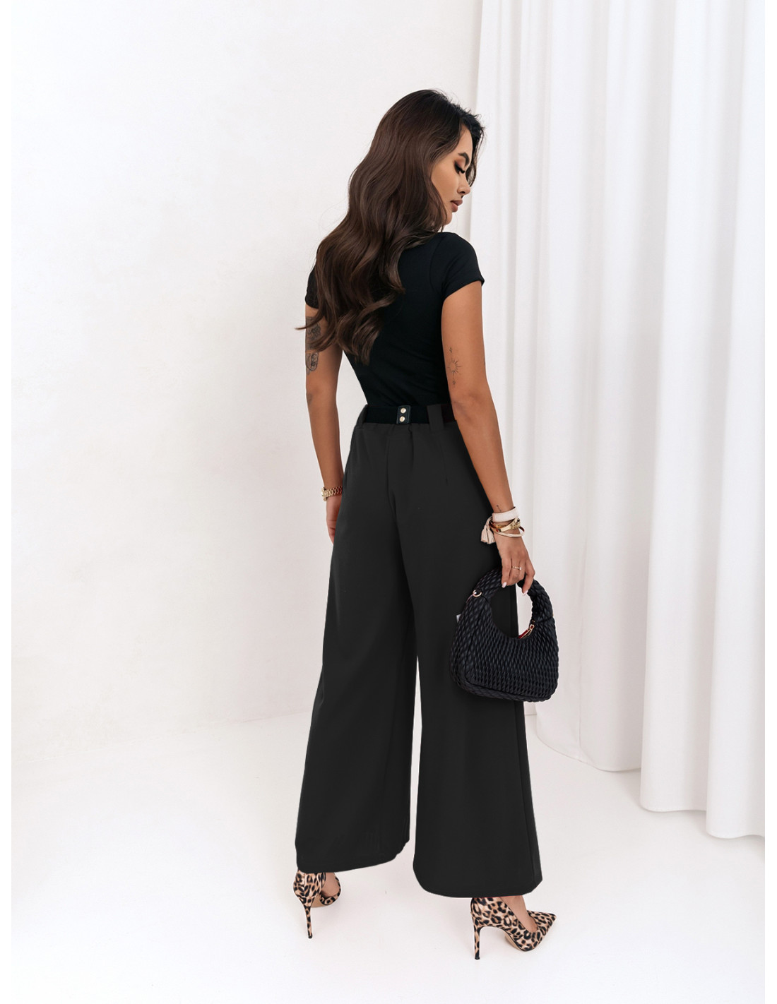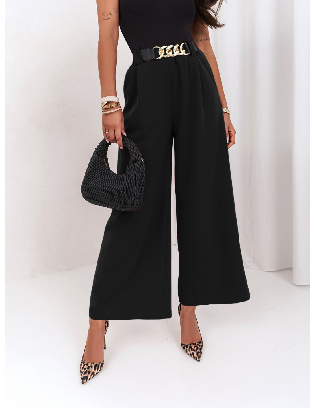 Szerokie spodnie z ozdobnym paskiem LATIFA - czarne