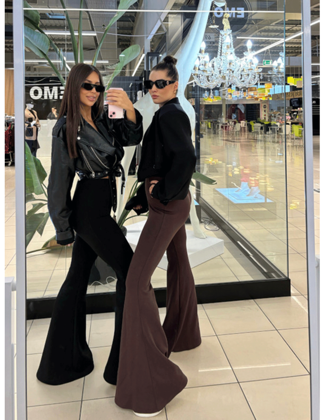 Dopasowane spodnie dzwony DOVE - czekoladowe