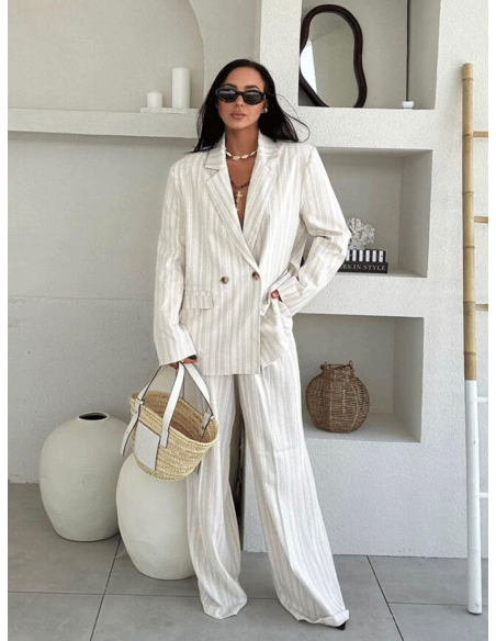 Wprowadź odrobinę wakacyjnej elegancji do swojej garderoby z lnianymi spodniami w pasy CHELY – modelem, który łączy wygodę, lekkość i styl!