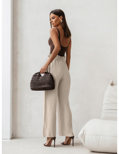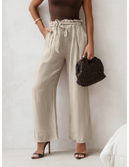 Stylowe lniane spodnie z paskiem ASKAR - beżowe