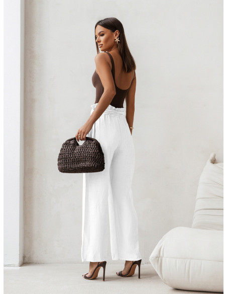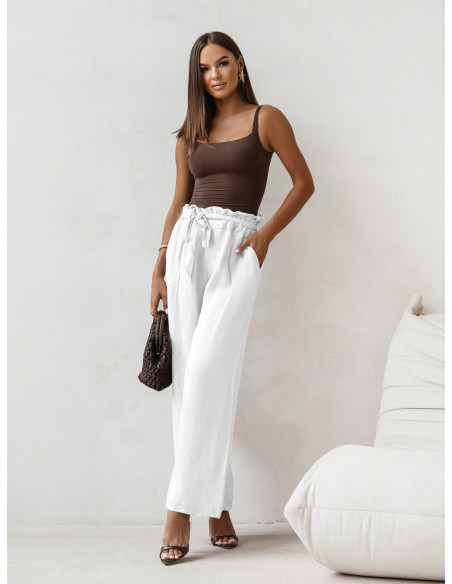 Stylowe lniane spodnie z paskiem ASKAR - białe