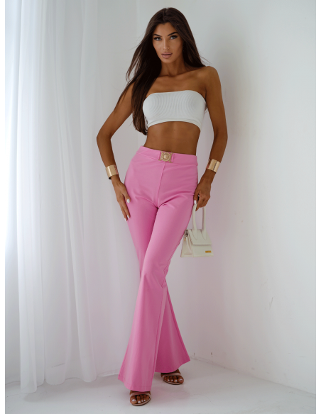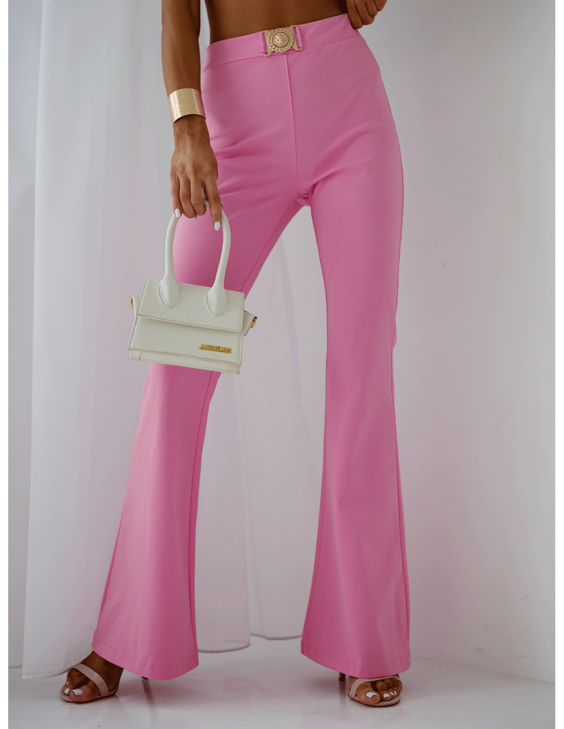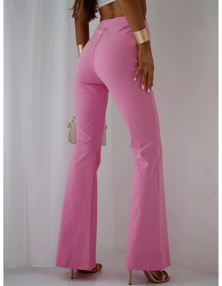 Dopasowane spodnie dzwony FERN - pudrowy róż