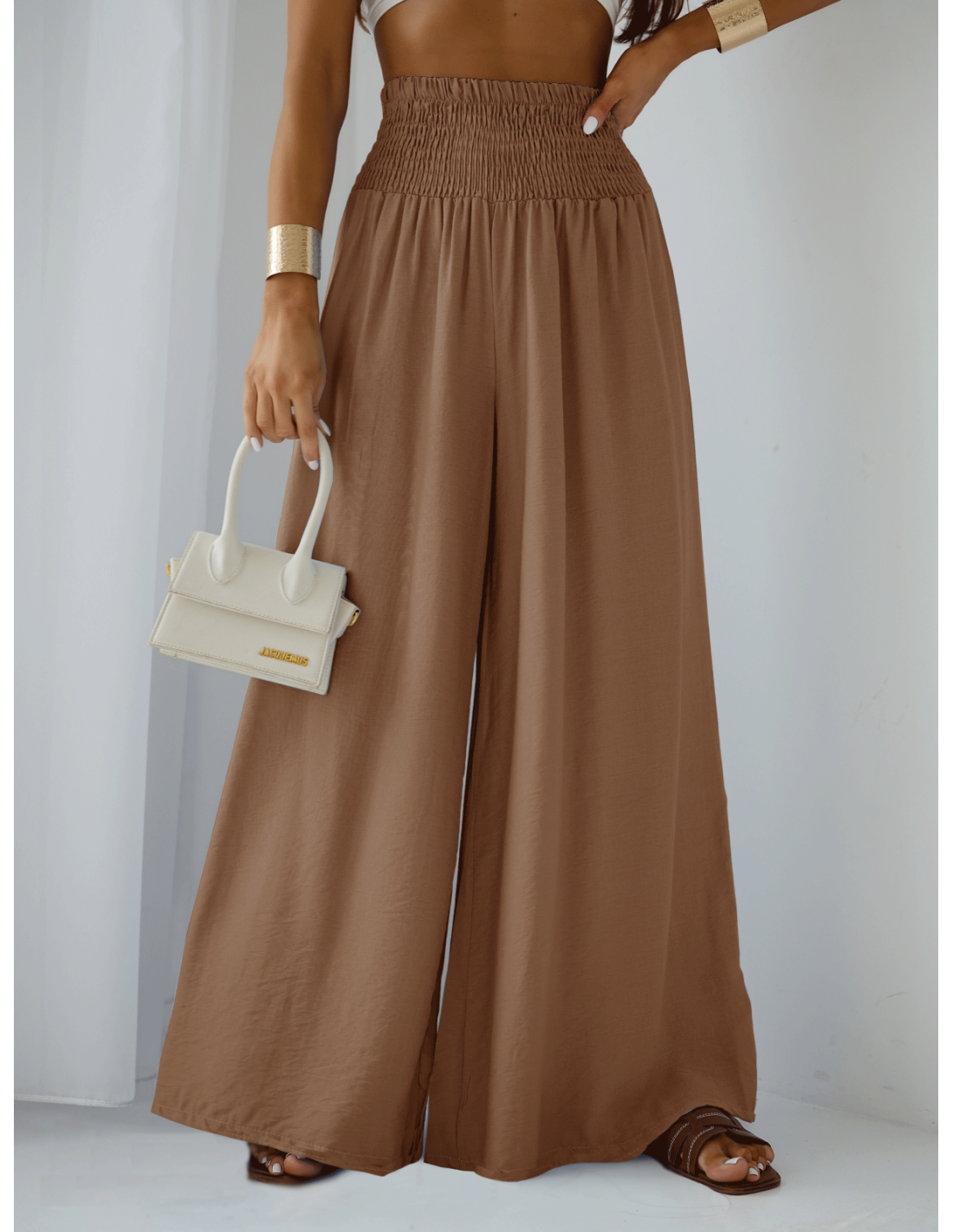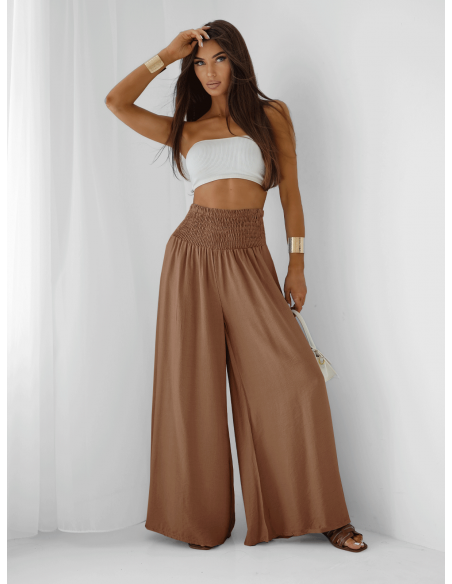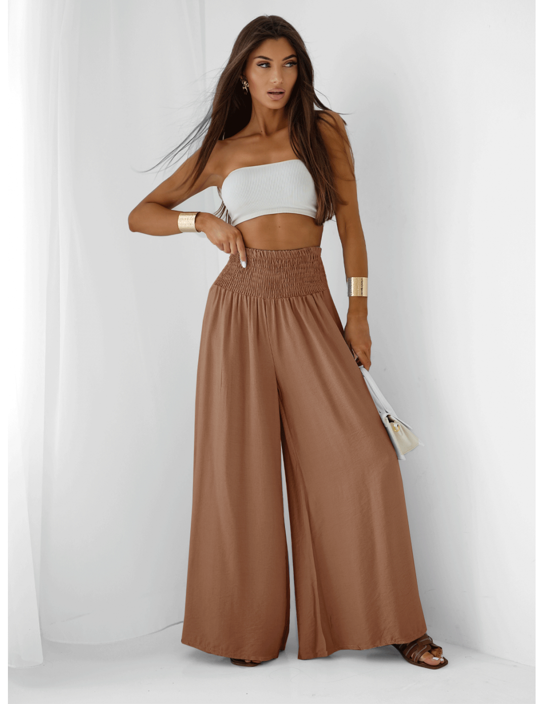 Wiskozowe spodnie z szerokimi nogawkami SYLVIE - cappuccino