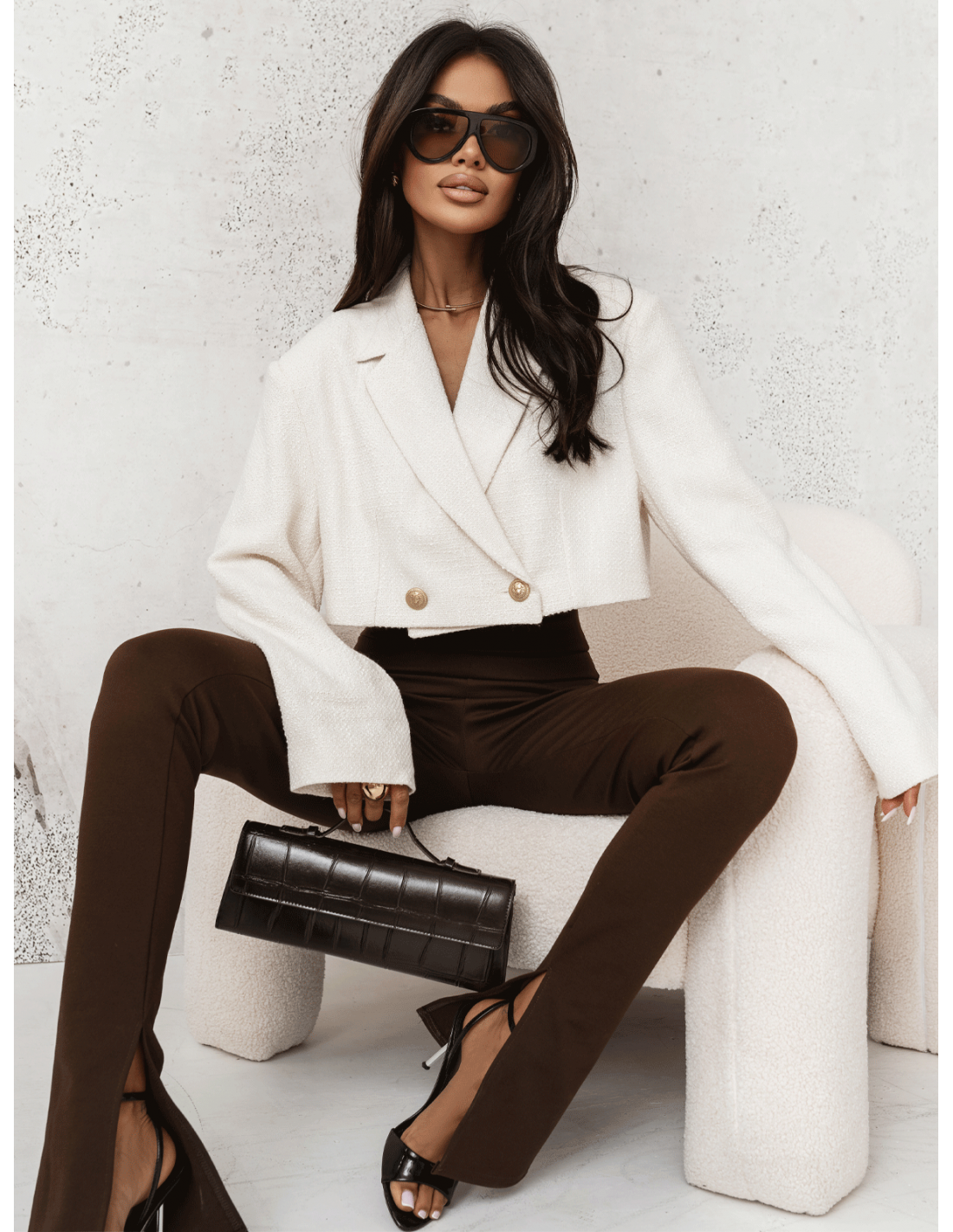 Noś je z krótką marynarką i szpilkami, jak na zdjęciu, dla efektu „total chic”, lub zestaw z oversize’owym swetrem i botkami, tworząc look idealny na co dzień.