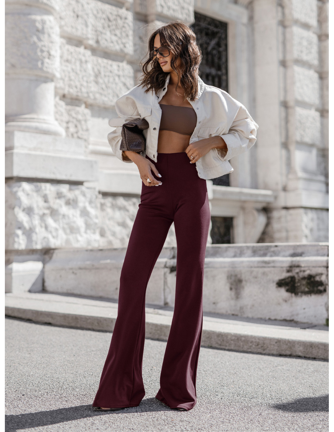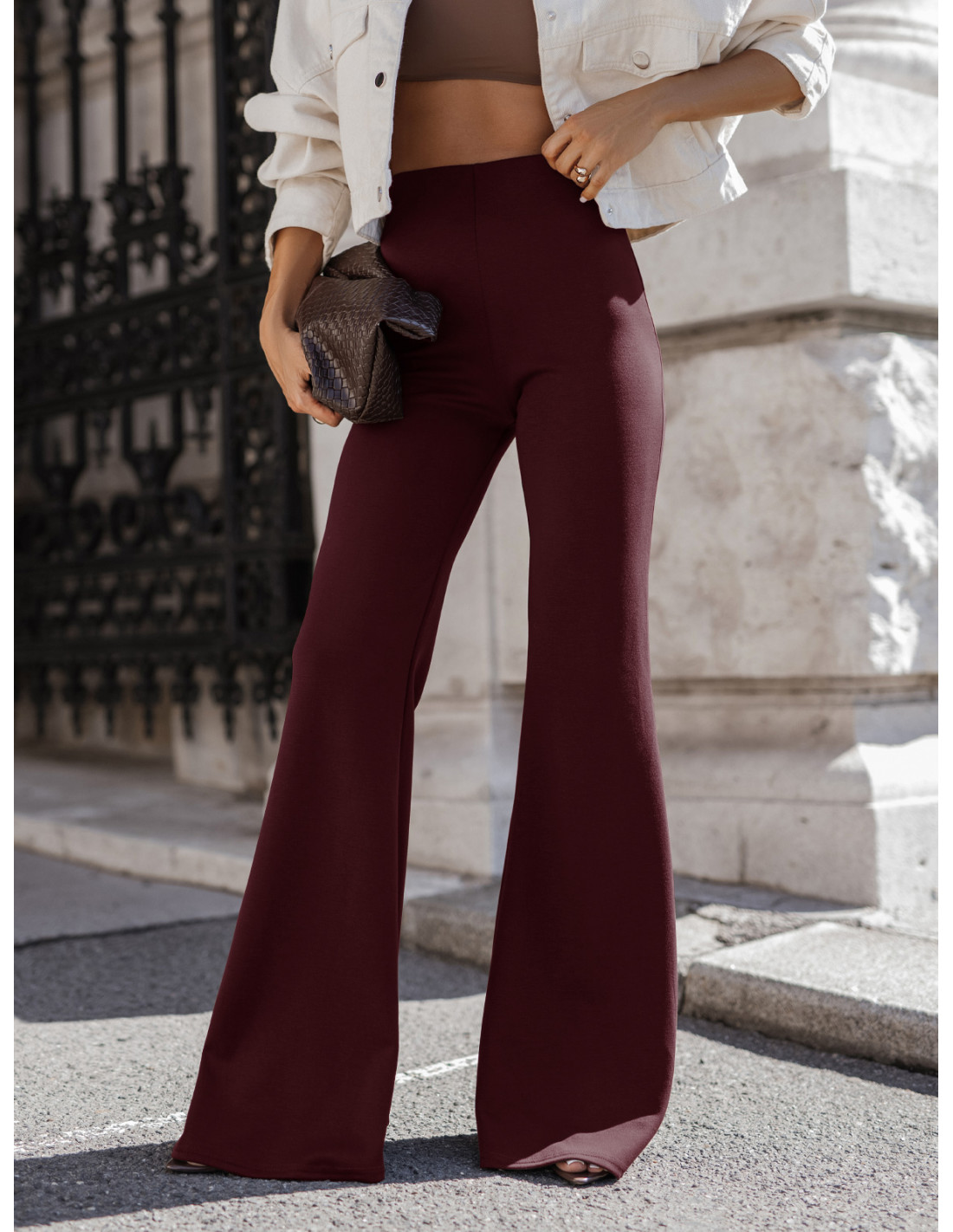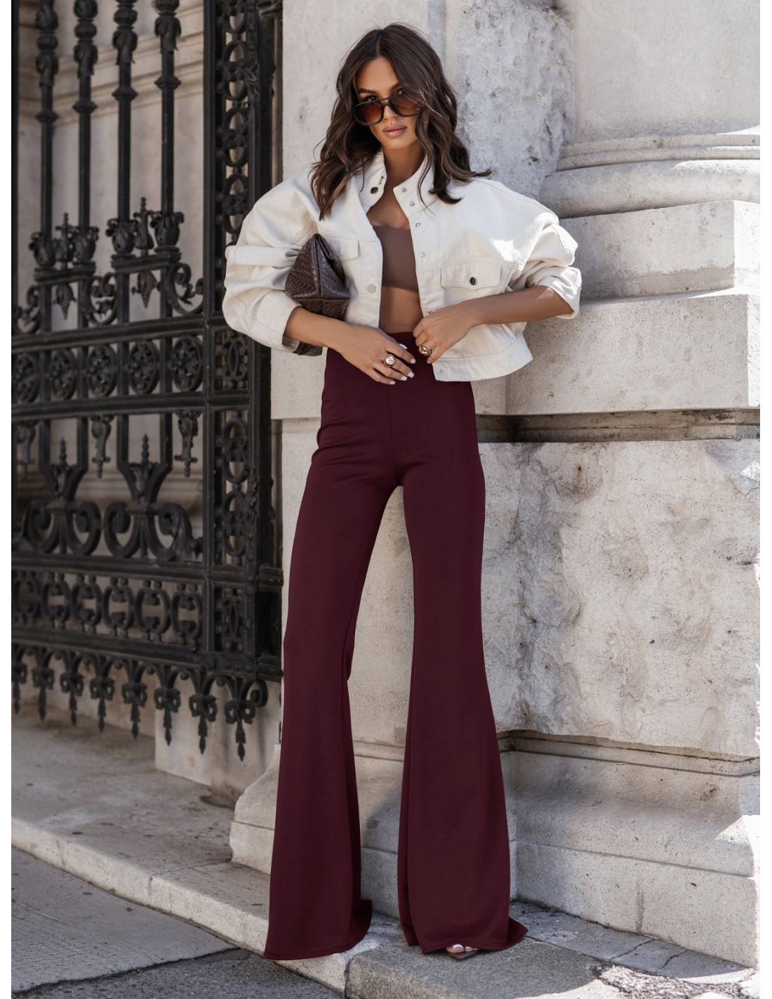 Masełkowe spodnie dzwony REILLY - bordowe