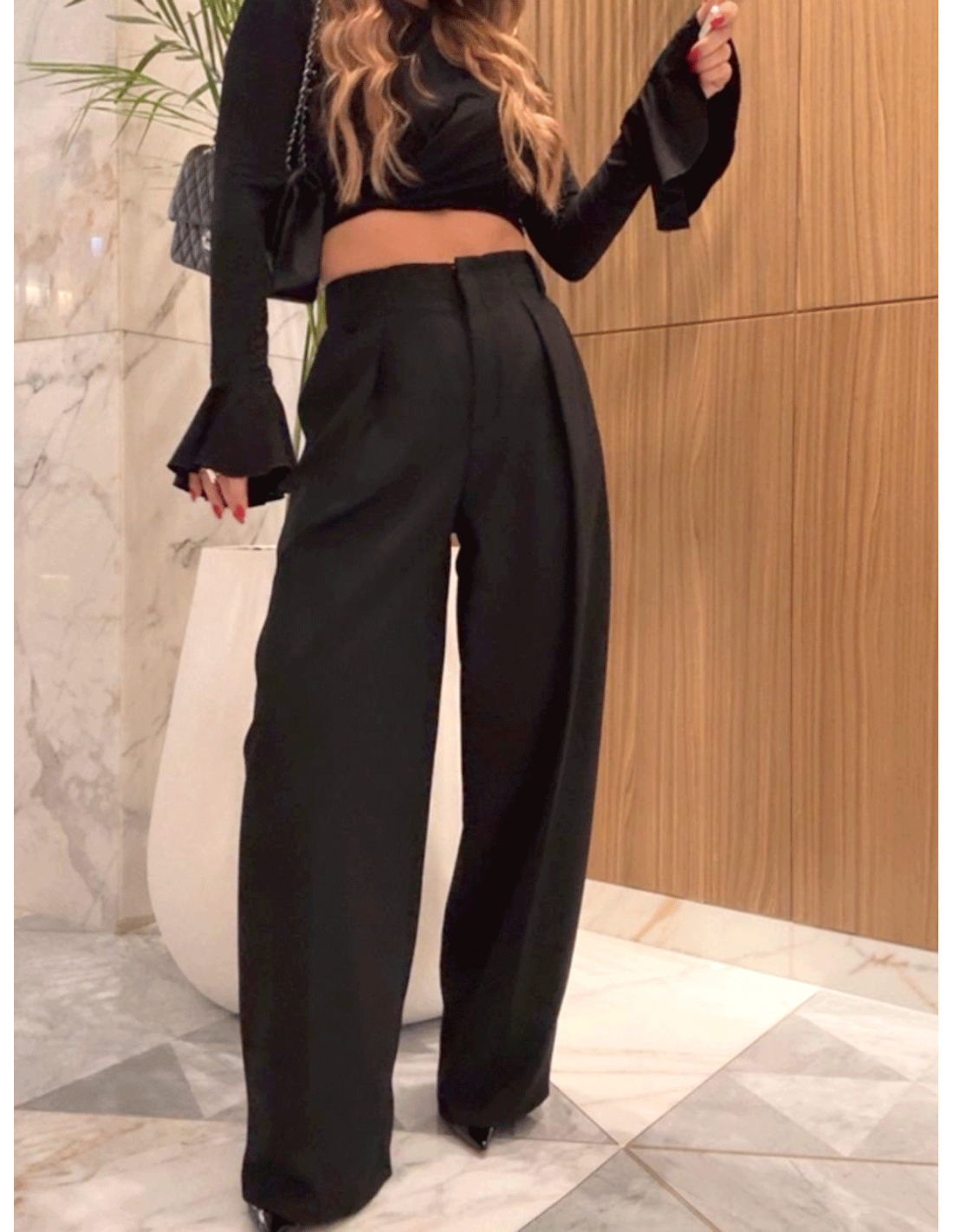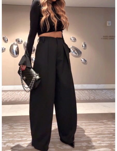 Eleganckie spodnie z szerokimi nogawkami ENZO - czarne