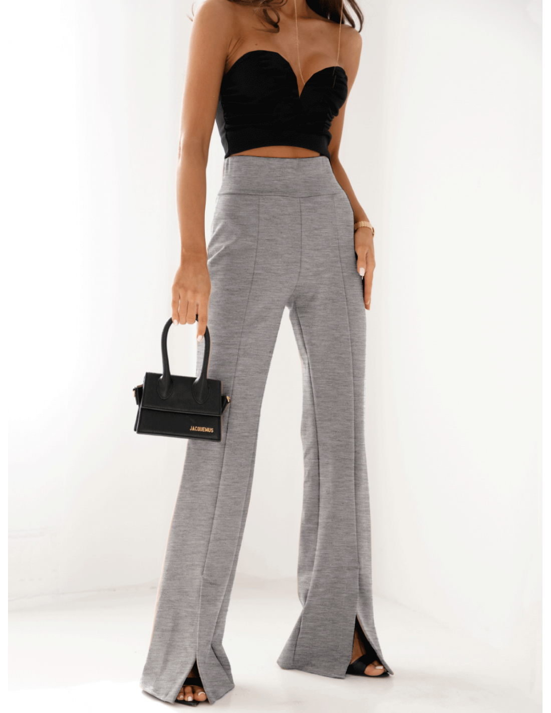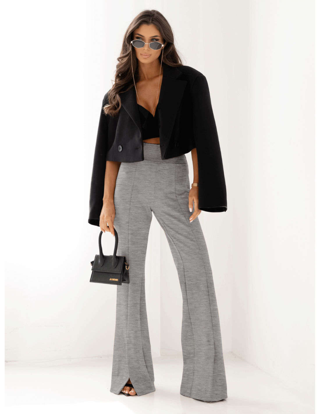 Dopasowane spodnie dzwony z rozporkiem TAYTUM - szary melanż