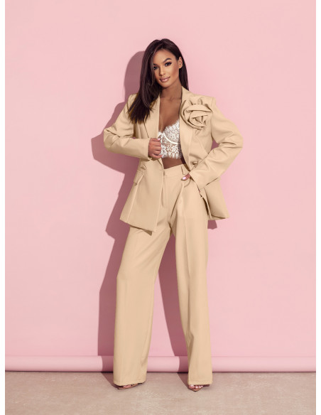WP eleganckie szerokie spodnie z zaszewkami - beżowe