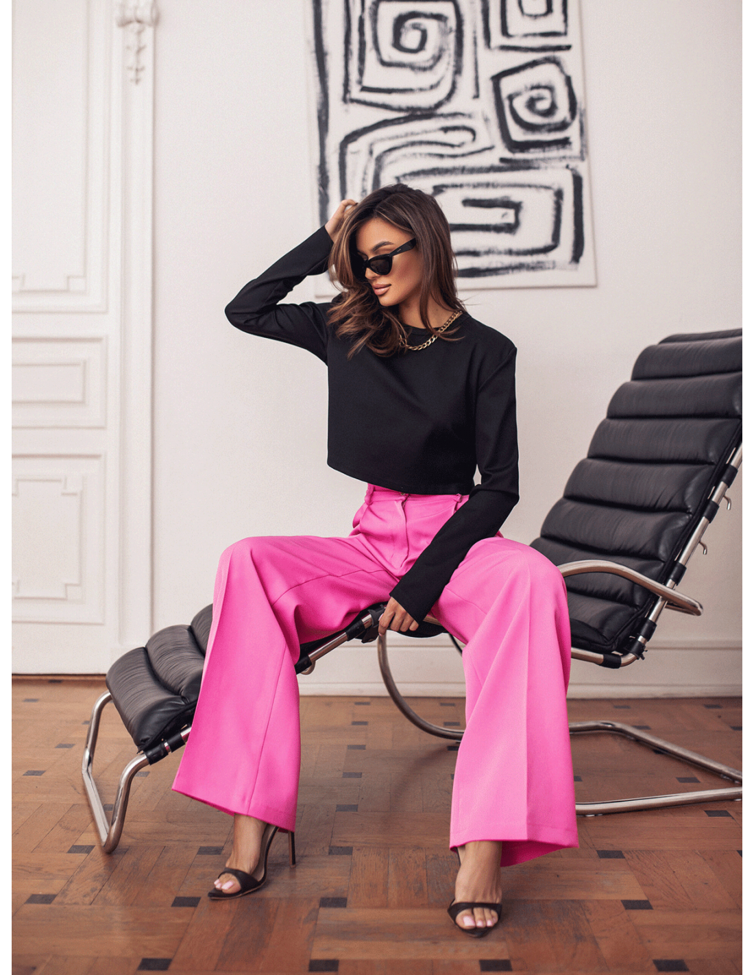 Eleganckie spodnie z szeroką nogawką ELIANNE - różowe