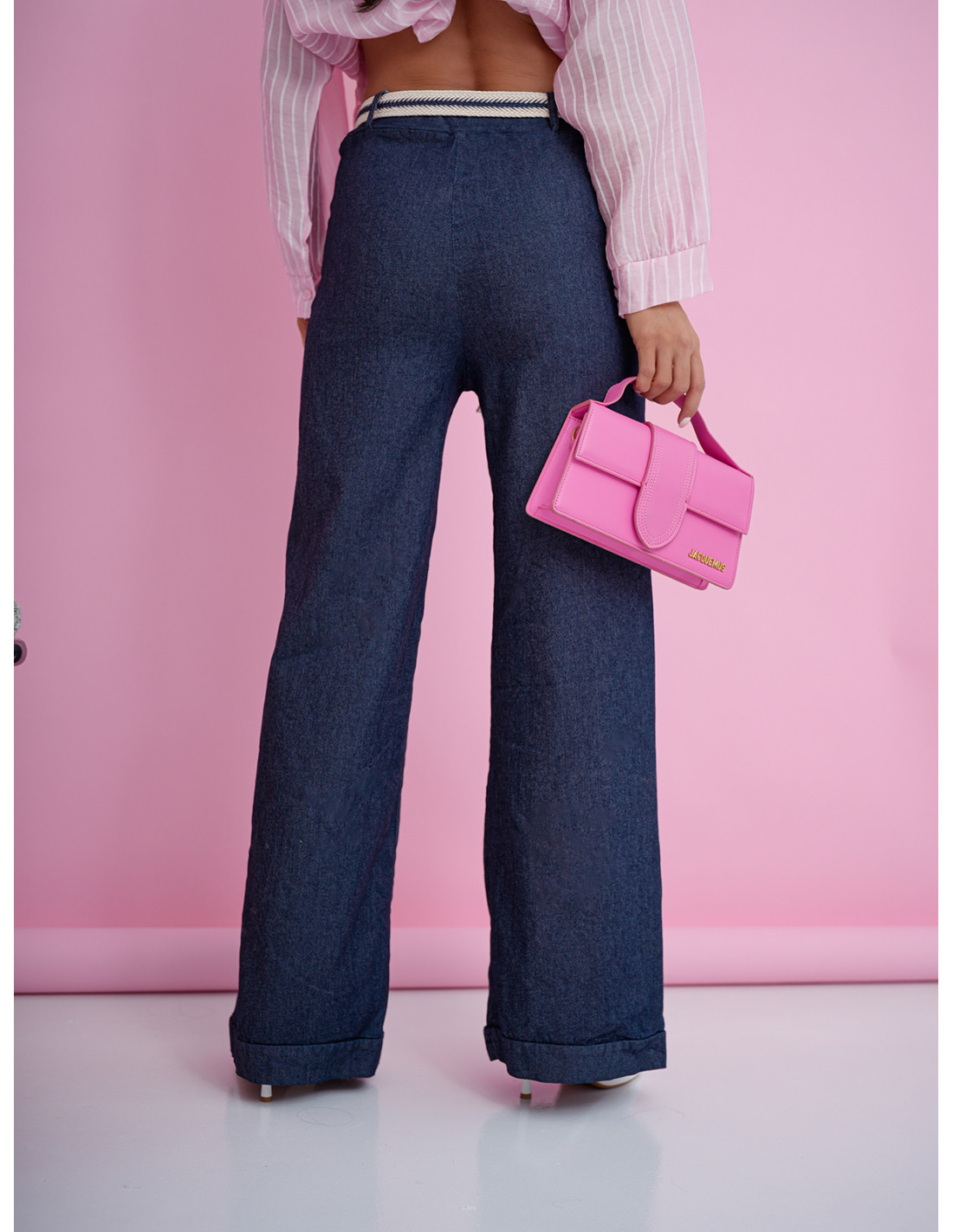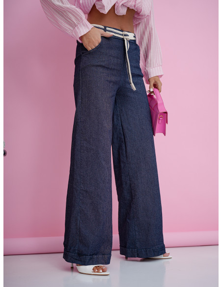 Bawełniane szerokie spodnie denim CADEN - granatowe
