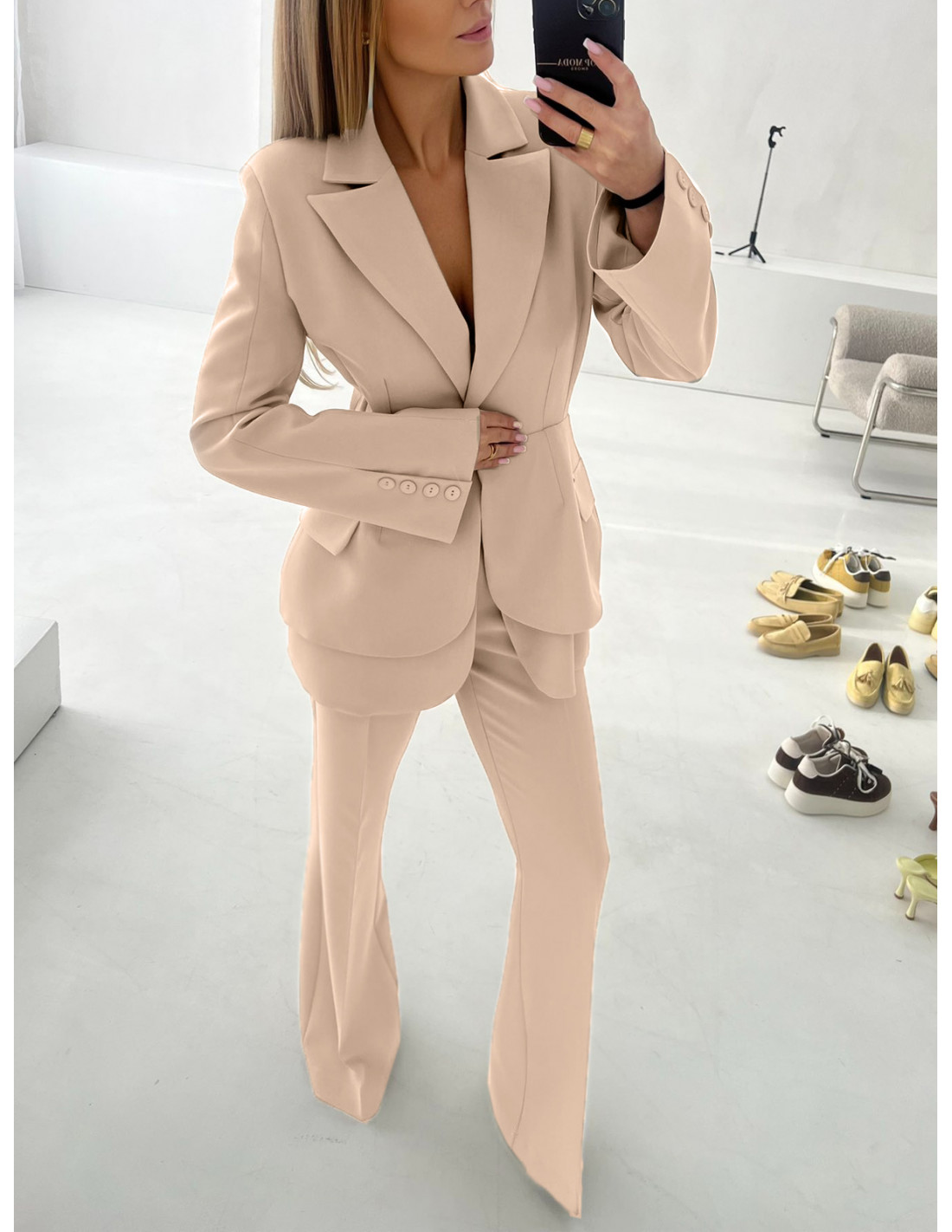 Te eleganckie beżowe spodnie to synonim klasy i kobiecej siły w nowoczesnym wydaniu.