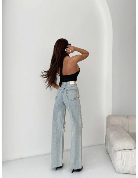 Jasny, przecierany denim wpisuje się w aktualne trendy i świetnie komponuje się zarówno z czernią, jak i neutralnymi odcieniami.