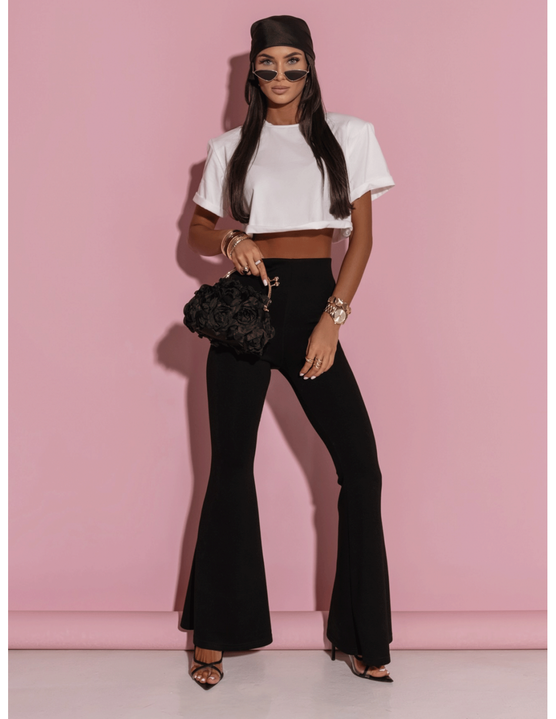 Wiskozowe spodnie dzwony w kolorze czarne idealne do stworzenia różnych niezapomniany stylizacji.