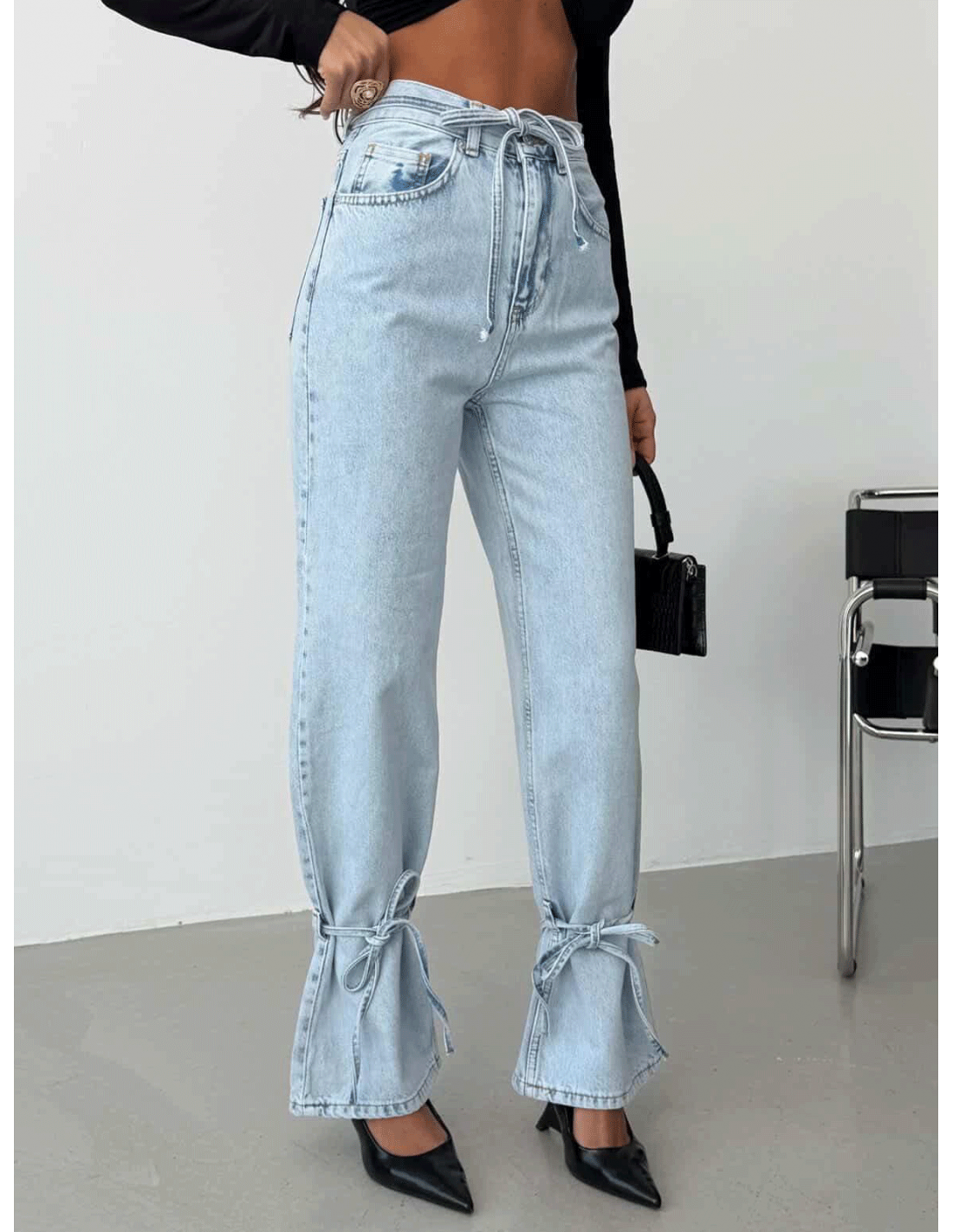 Spodnie jeansy z wiązaniem przy nogawkach HAILEE - jasny jeans