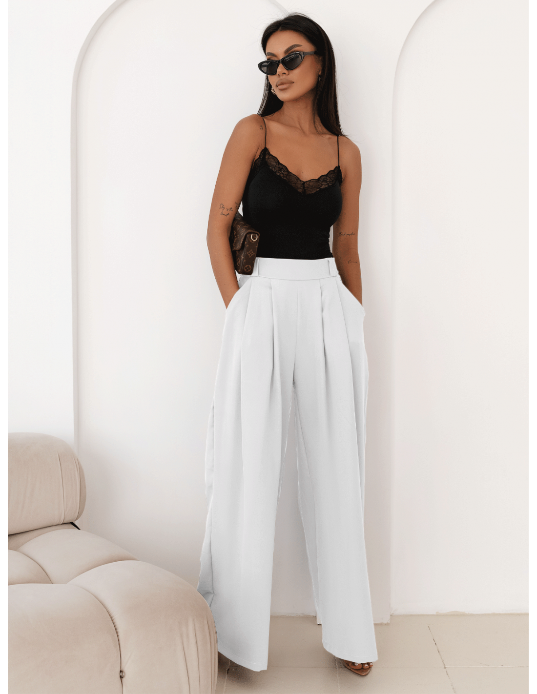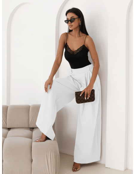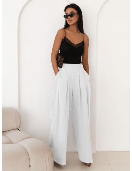 Stylowe szerokie spodnie z zakładkami MOTOKO - białe