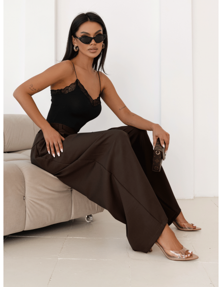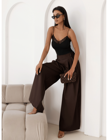 Stylowe szerokie spodnie z zakładkami MOTOKO - czekoladowe