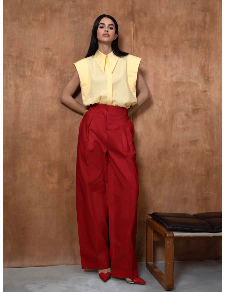 Eleganckie szerokie spodnie z kantem FIGRO - czerwone