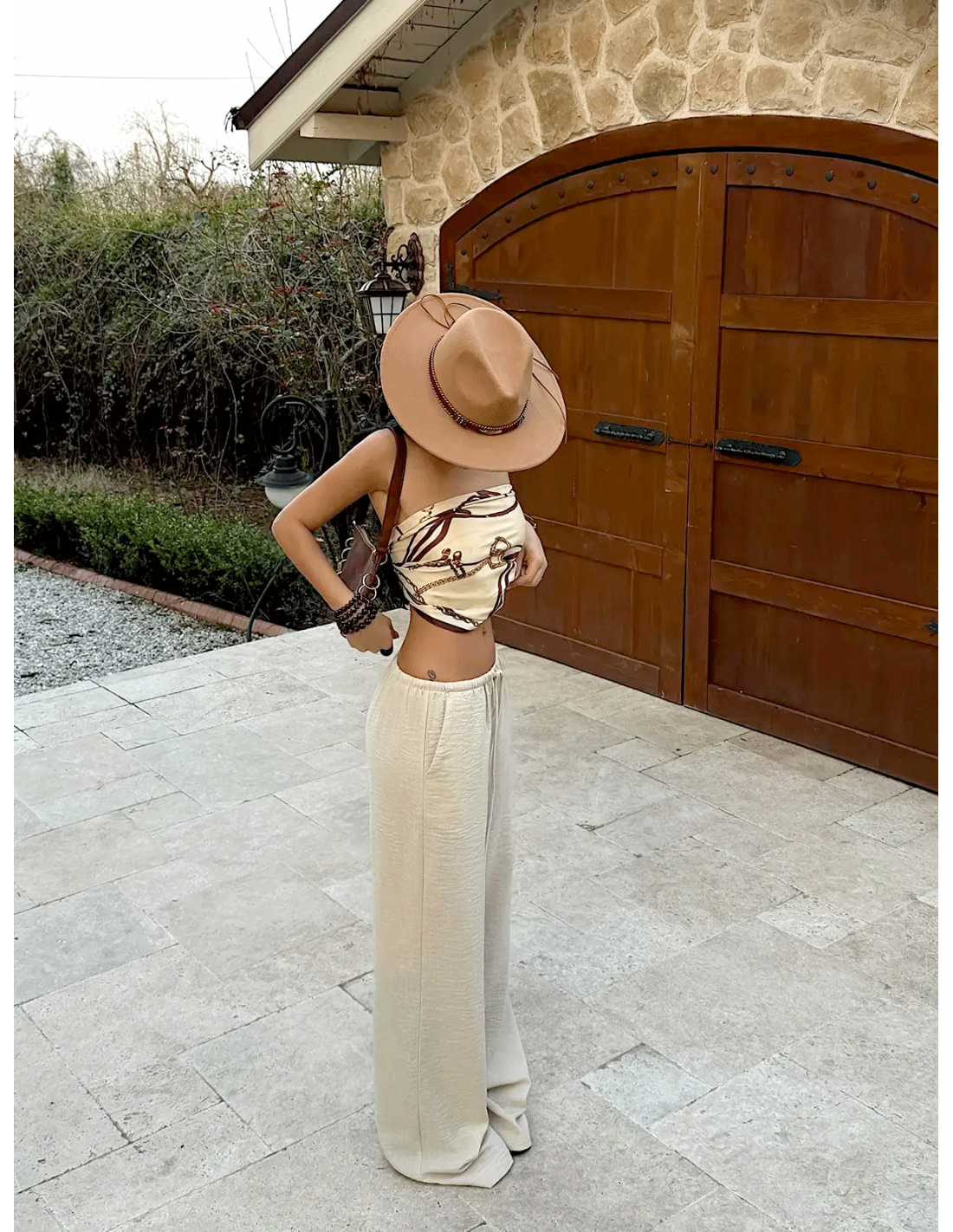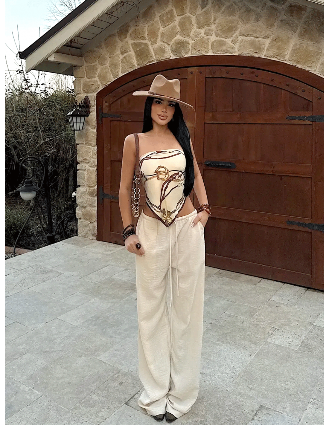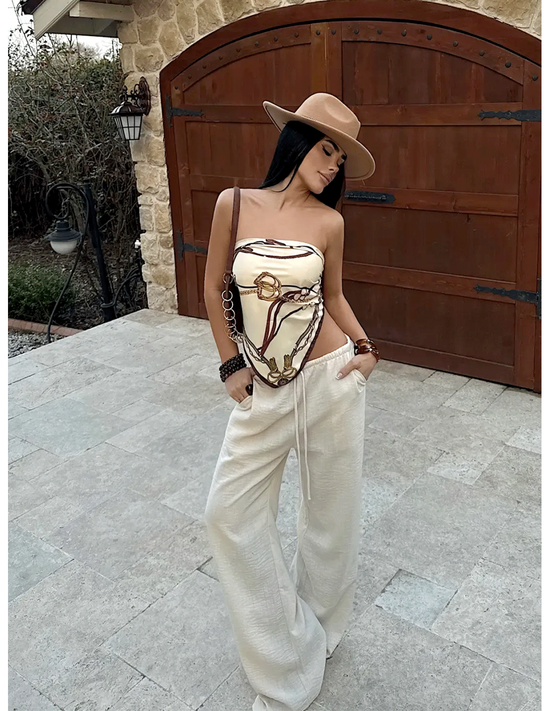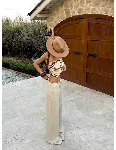 Stylowe szerokie spodnie VELVERA - beżowe