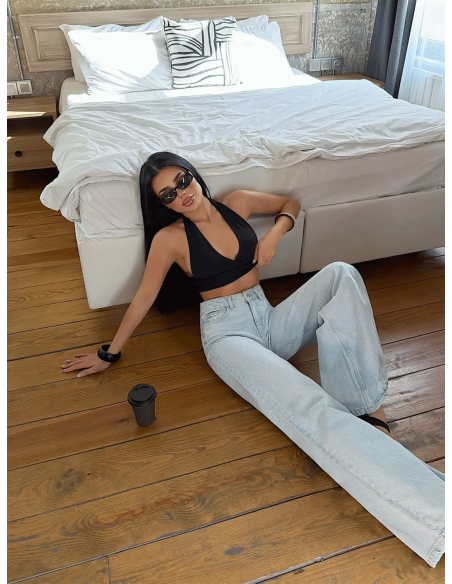 Spodnie jeans z szerokimi nogawkami ALVENA - jasny jeans