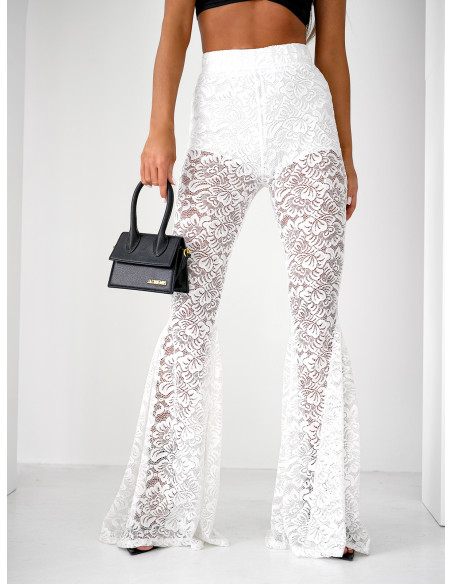 Koronkowe spodnie dzwony EXTRANY - białe