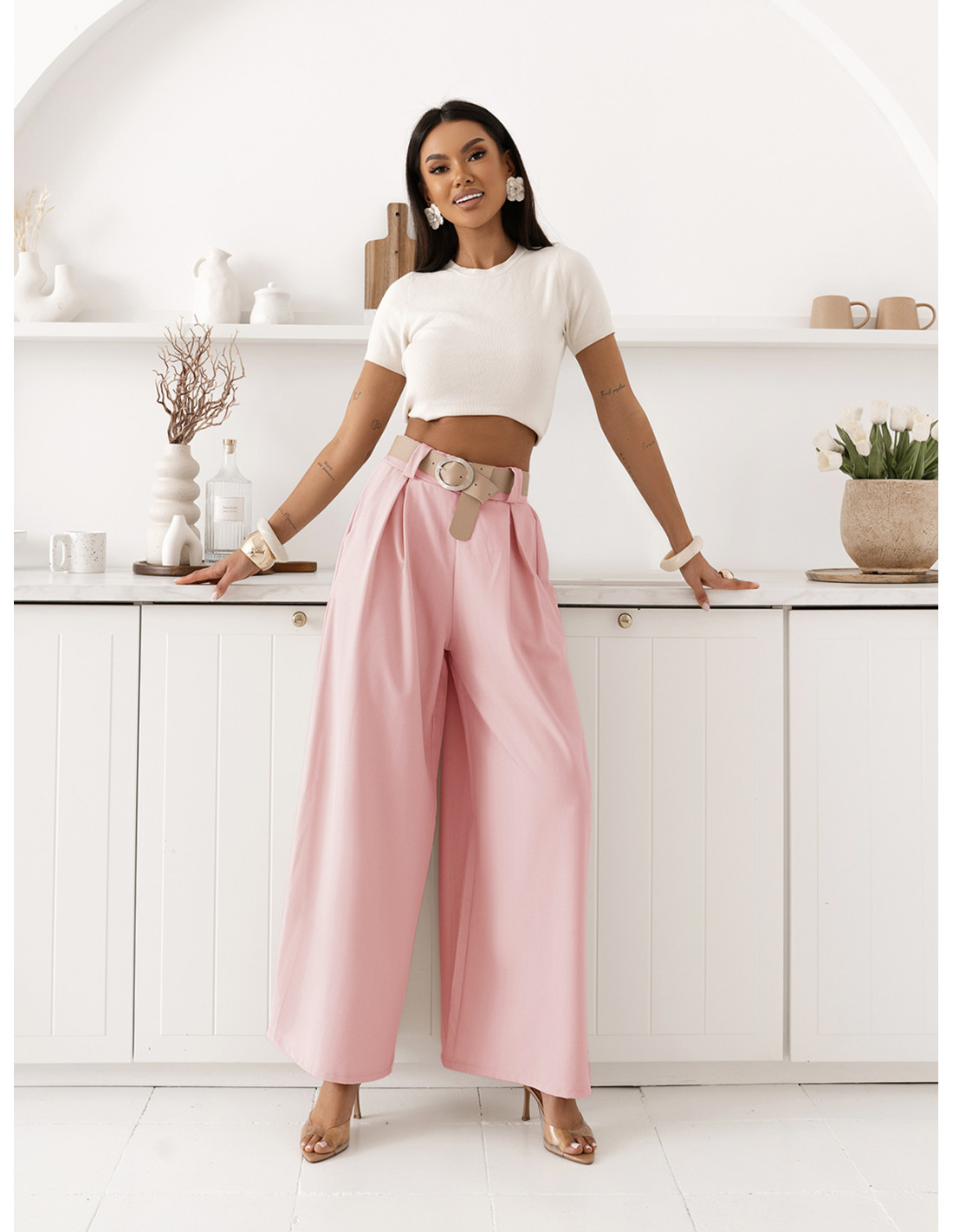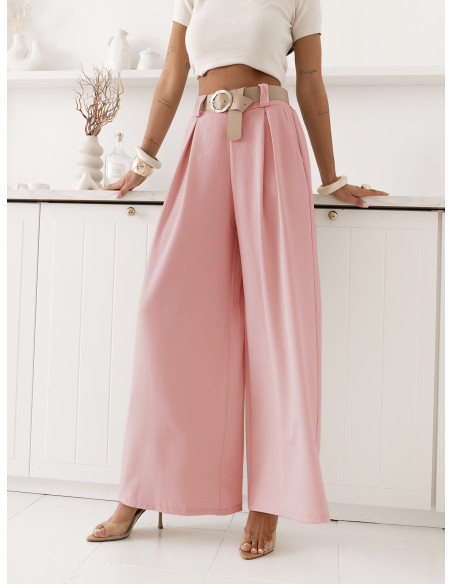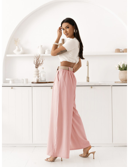 Eleganckie spodnie z szerokimi nogawkami SOLVEA - pudrowy róż
