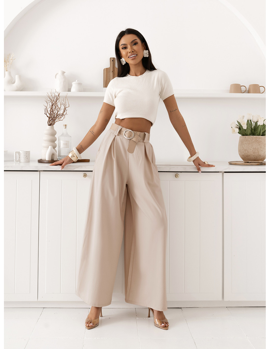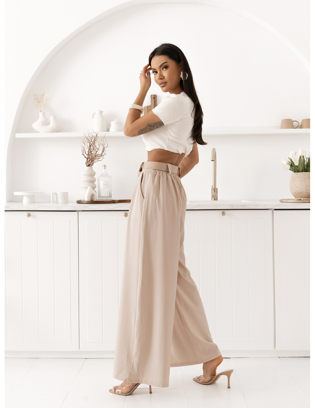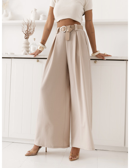 Eleganckie spodnie z szerokimi nogawkami SOLVEA - beżowe