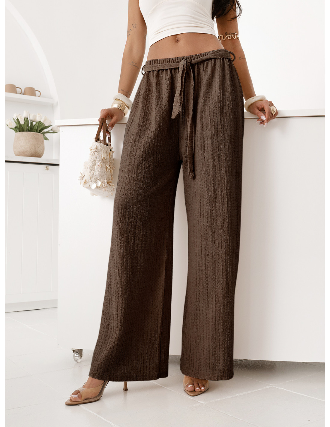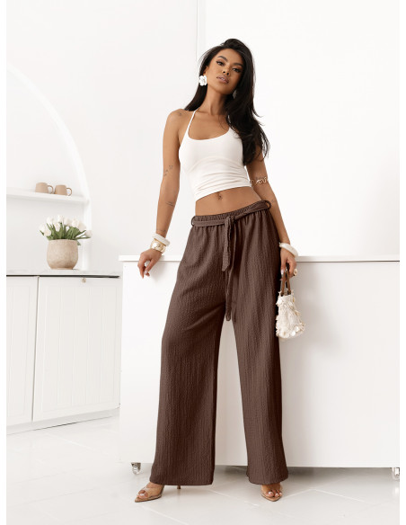 Szerokie spodnie z wiązaniem BREZELLA - czekoladowe