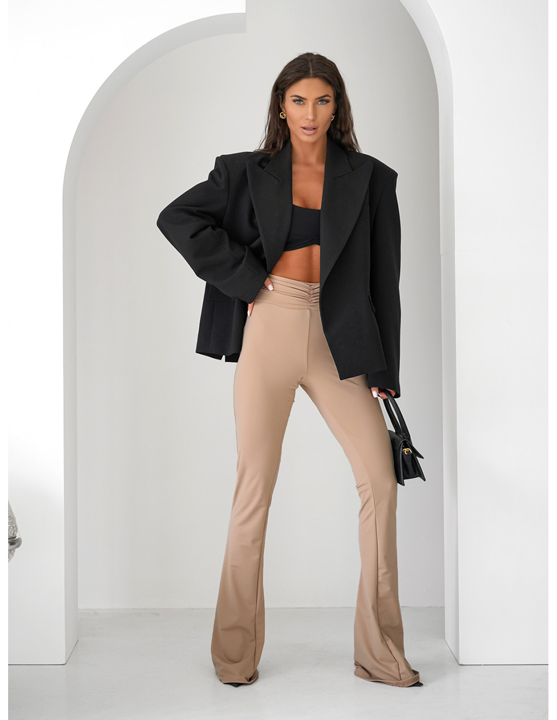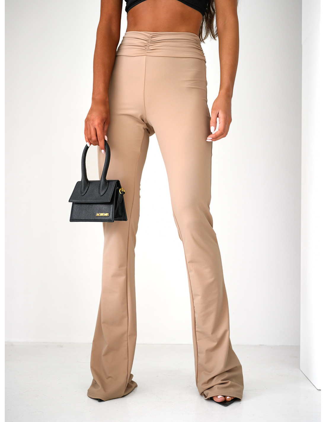Elastyczne spodnie dzwony z marszczeniem MIRTH - beżowe