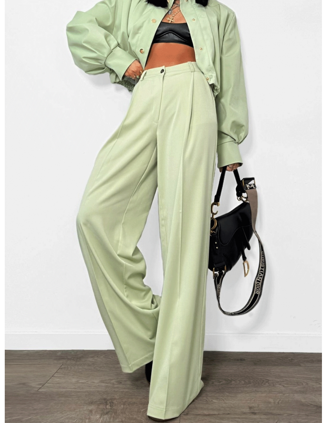 Eleganckie spodnie w kolorze matcha to świeża modowa propozycja ,która wyróżni każdą stylizację.