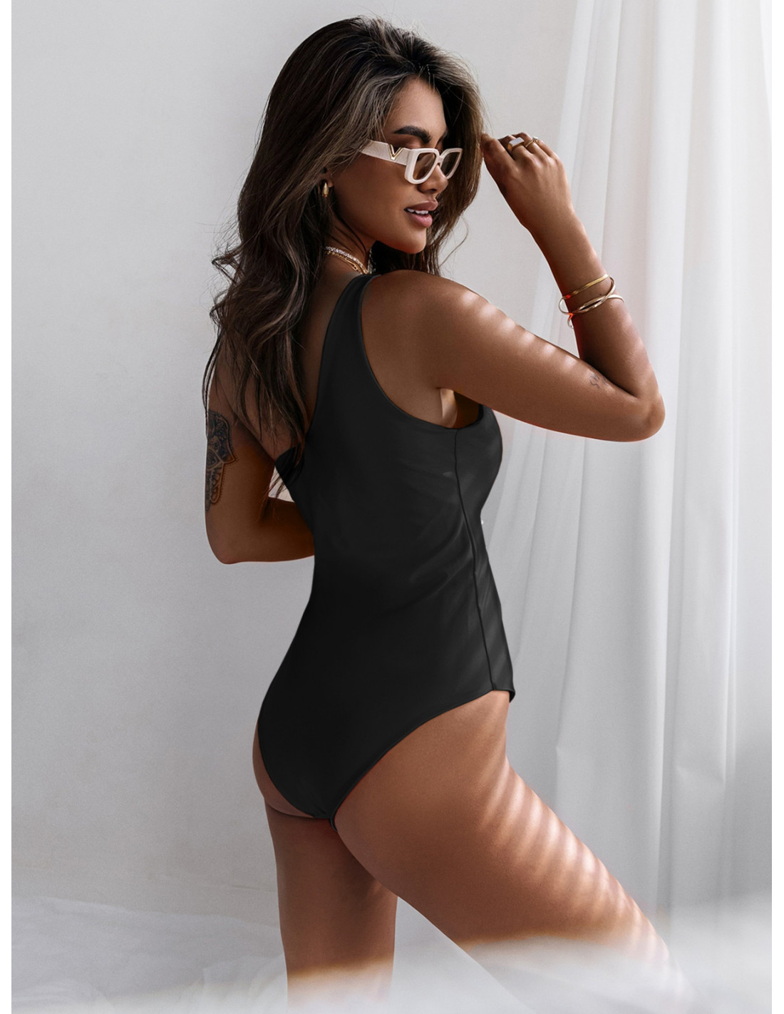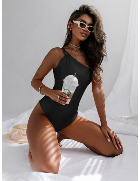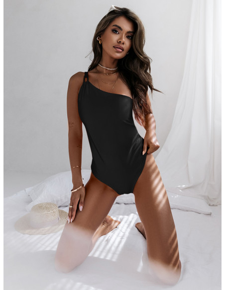 Jednoczęściowy strój kąpielowy na jedno ramię - CARMEN - czarny