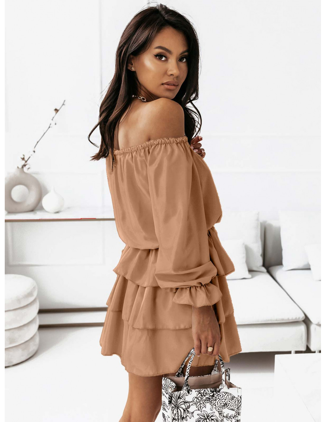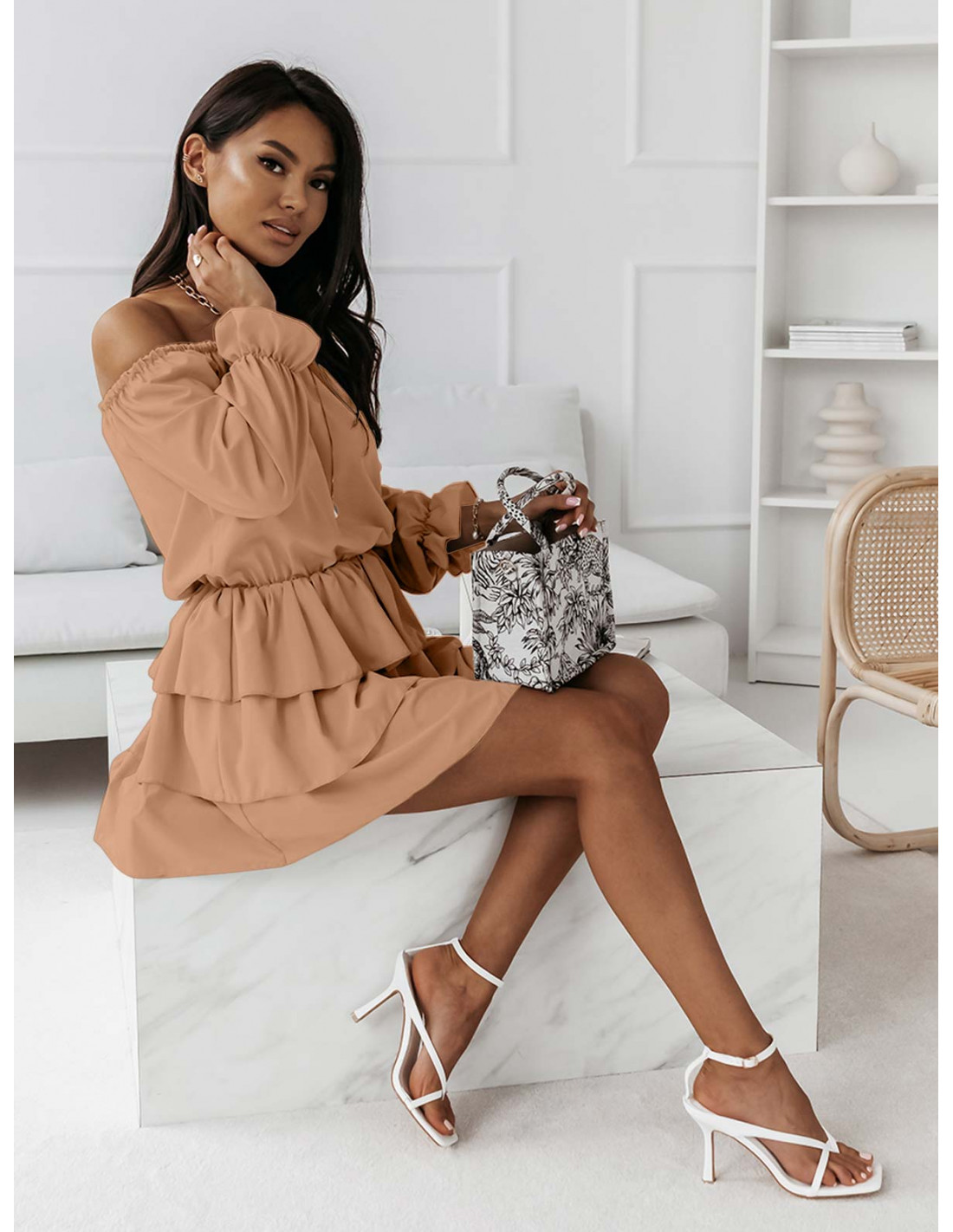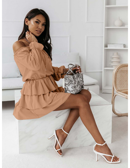 Rozkloszowana sukienka z falbanami ROMANTIC - beżowy