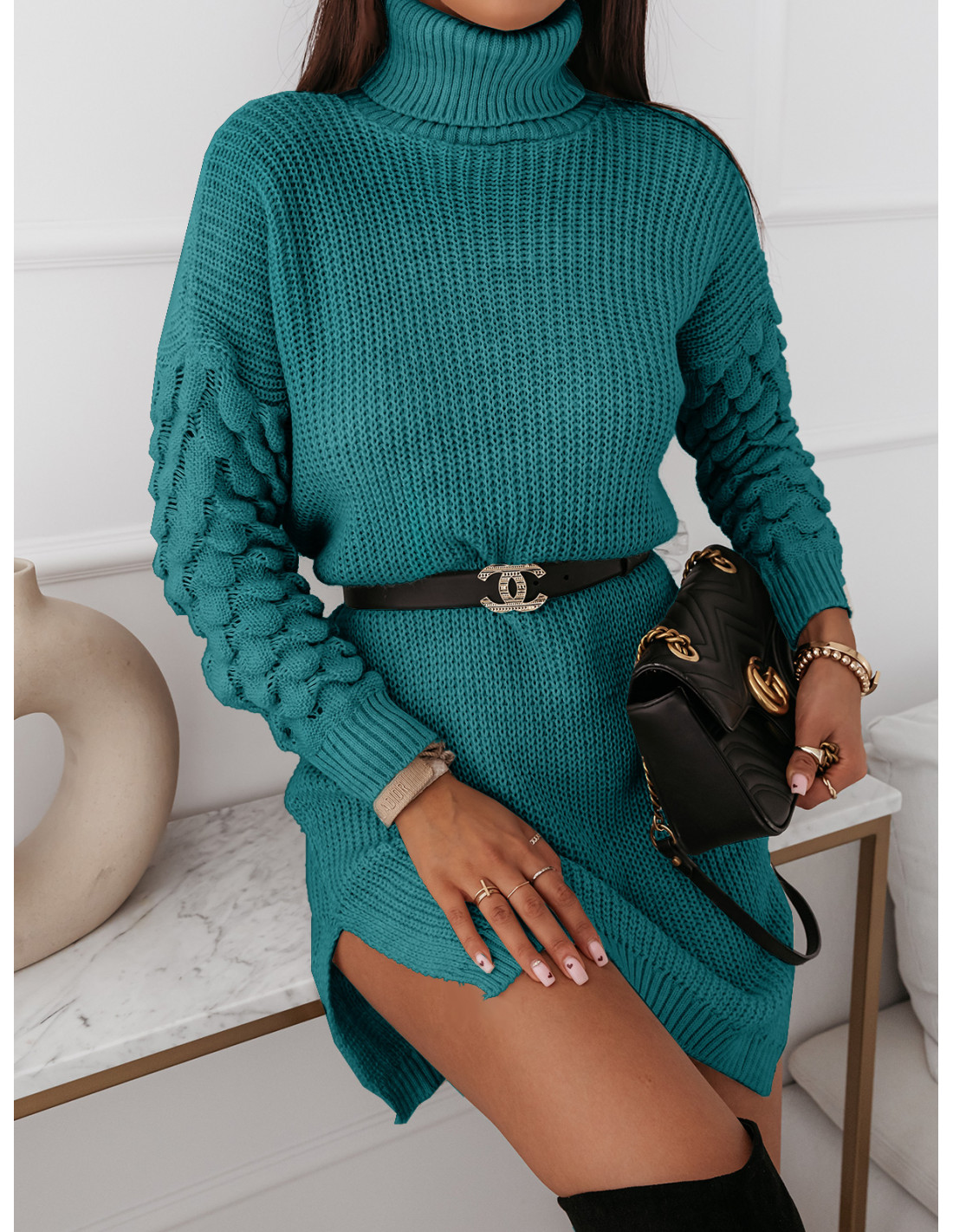 Sukienka sweterkowa z golfem SONIA - morska