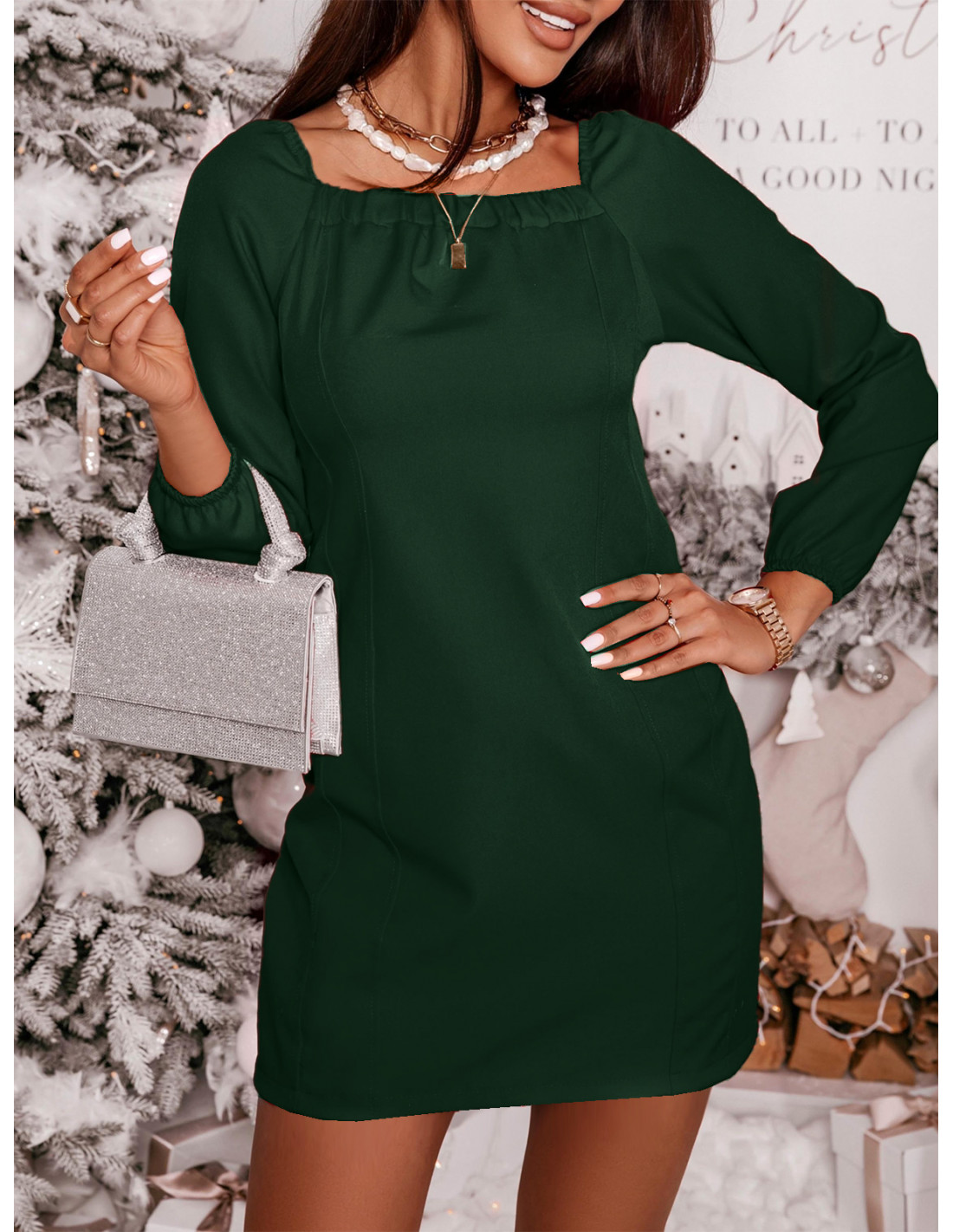 Trapezowa mini sukienka - MAGNETICA - butelkowa zieleń