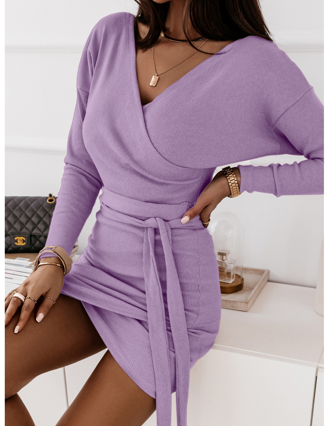 Sukienka prążkowana z przekładanym dekoltem - KESIA - liliowa