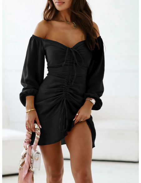 Sukienka z marszczeniem na przodzie - LORA - czarna