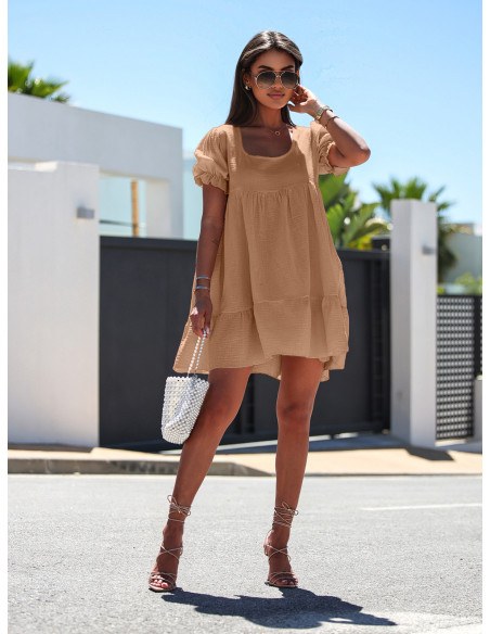 Trapezowa sukienka typu babydoll SINDI - beżowa